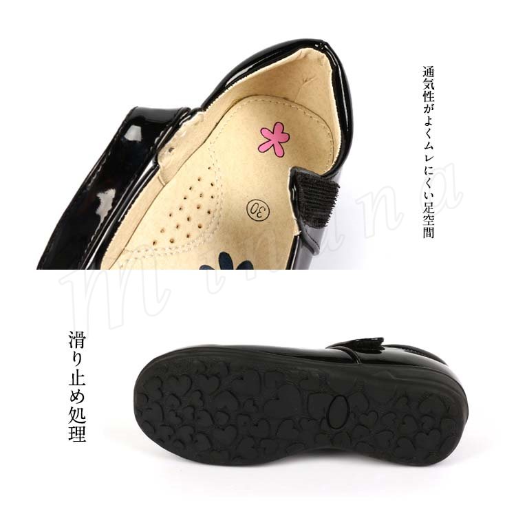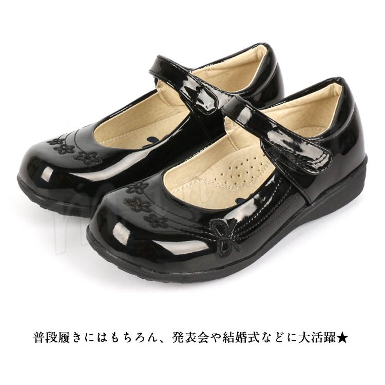 | 高級感あふれる女の子フォーマルシューズ☆ ベルトはマジックテープ式で着脱楽々。 入園式、発表会、お受験、結婚式、卒園式など…いろいろな行事に幅広くご使用頂けます! | |