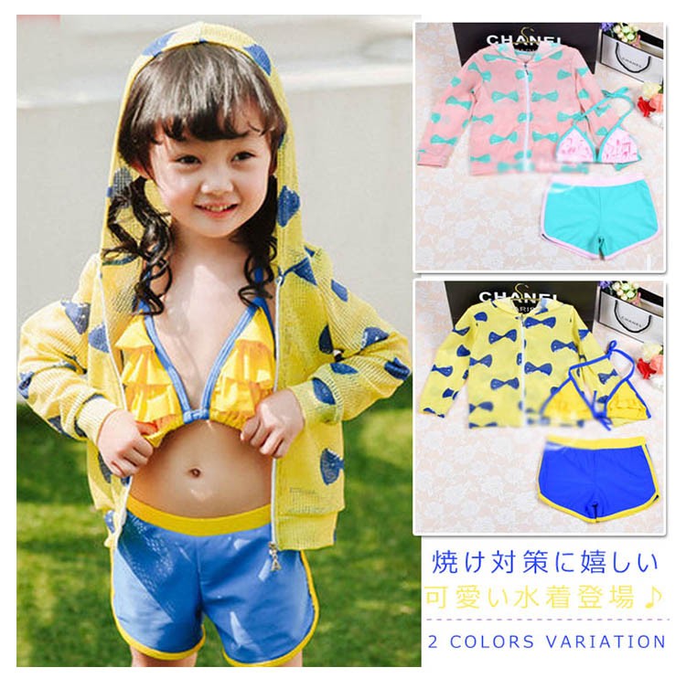 キッズ水着 3点セット ブラ+パンツ+ラッシュガード ジップアップ キッズ 水着 女の子 セパレート ビキニ 長袖 ラッシュガード 子供用 日