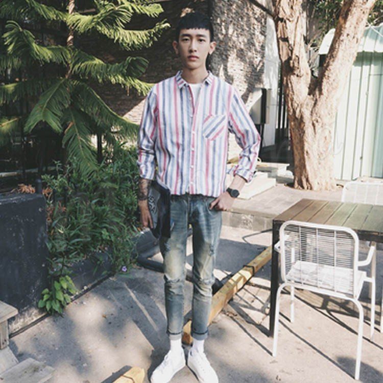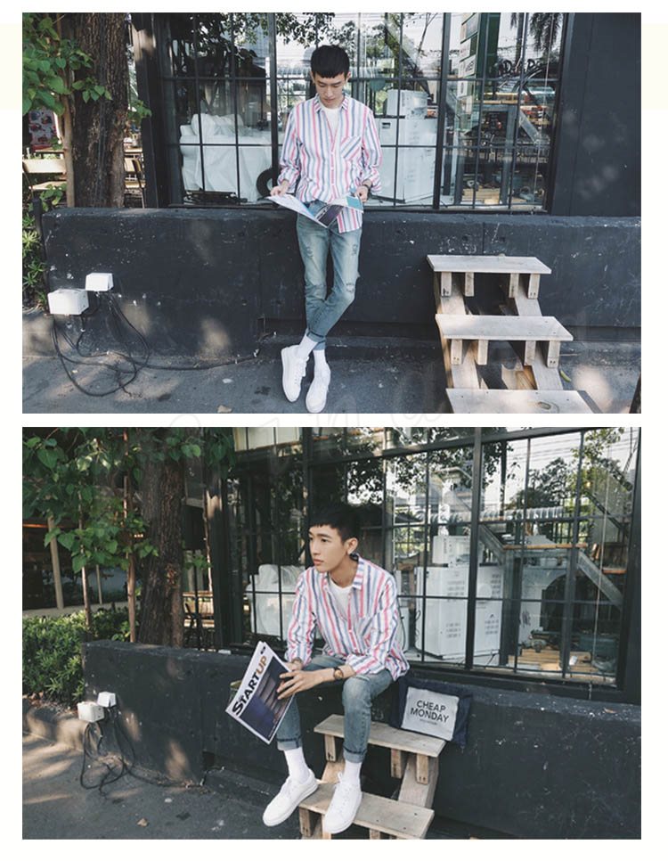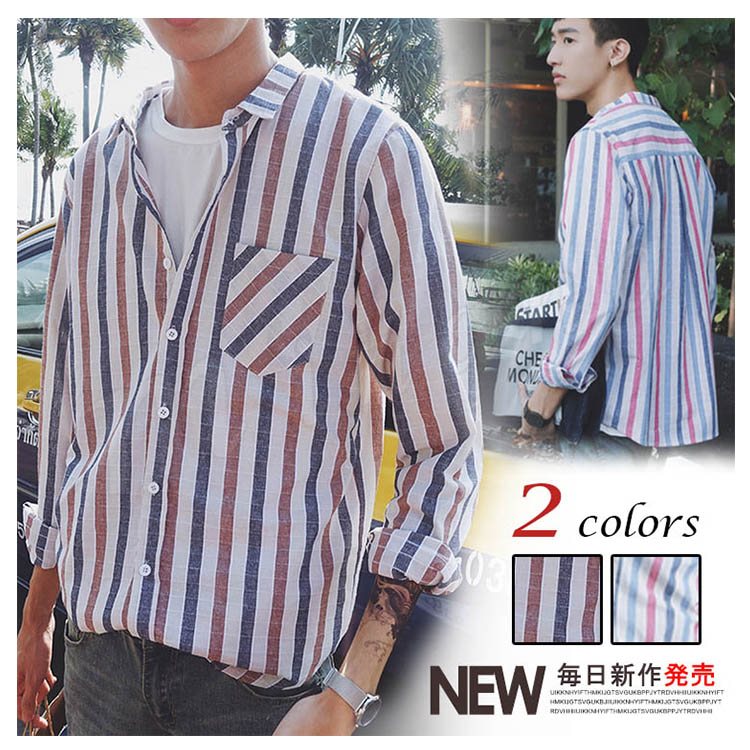 送料無料リゾート風 シャツ 長袖 シャツ トップス メンズ ボーダー柄 長袖シャツ ストライブ柄 カジュアルシャツ ウエスタンシャツ 春服 春物