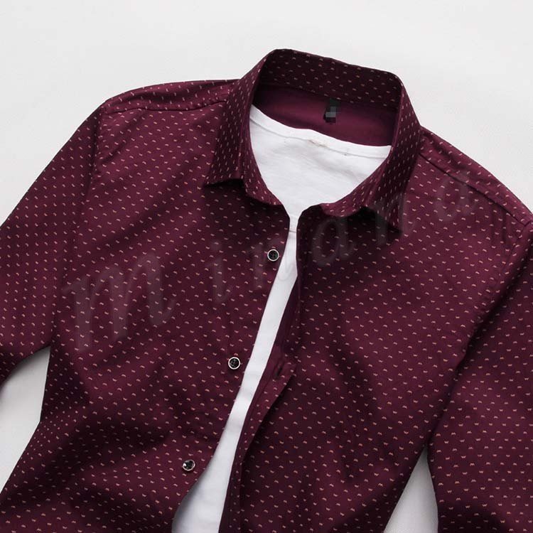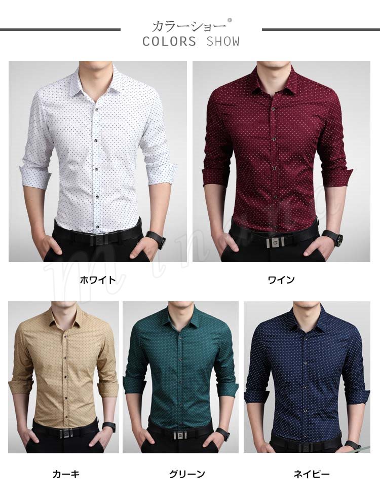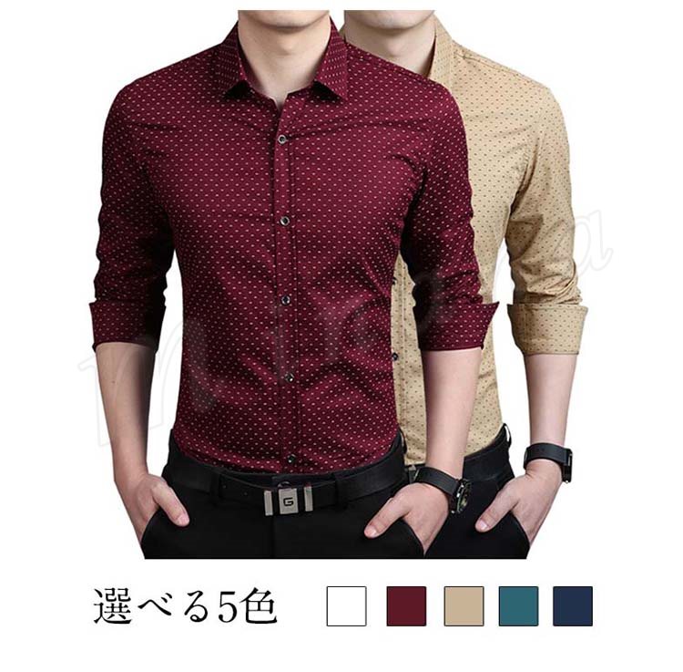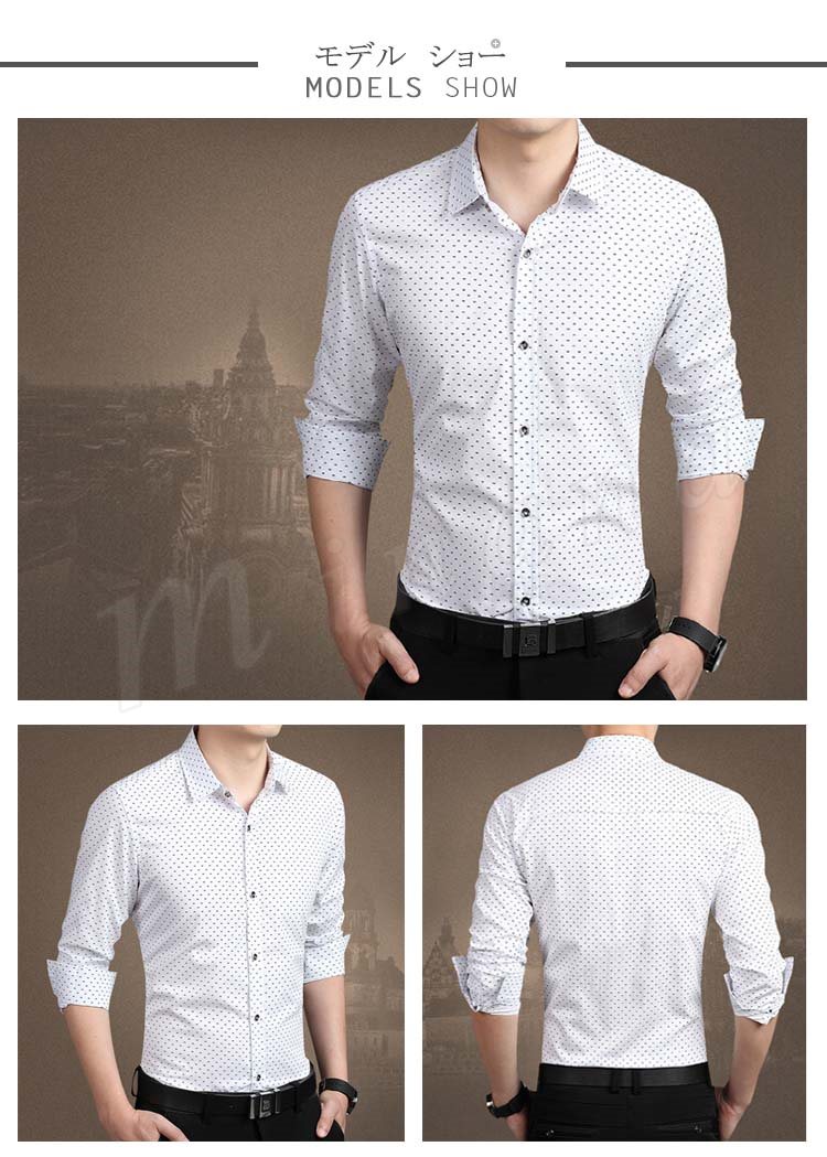 送料無料シャツ トップス 折襟 ドット柄 大きいサイズ 春 ブラウス フォーマル インナー 長袖 メンズファション 薄地 ドットシャツ