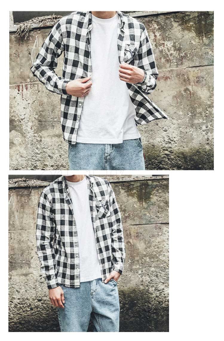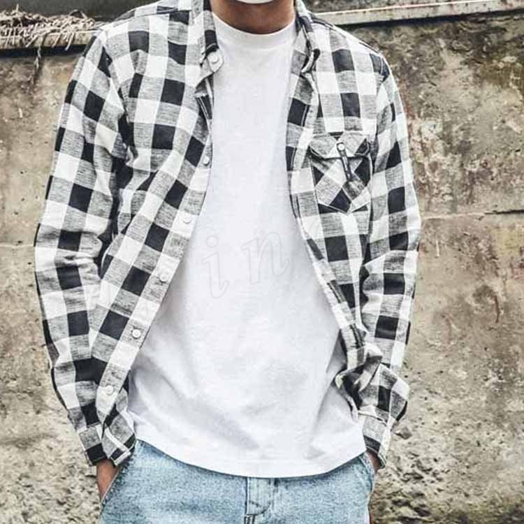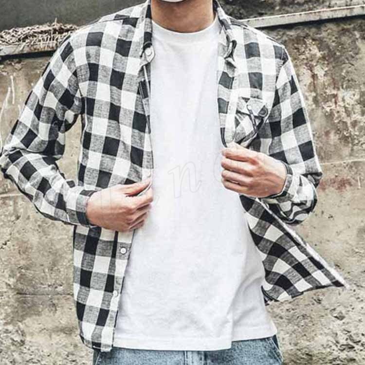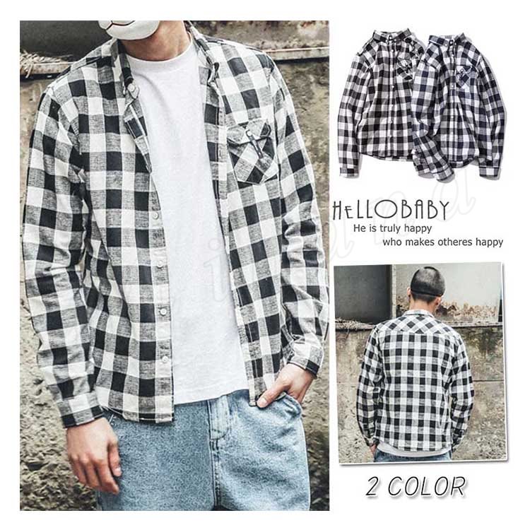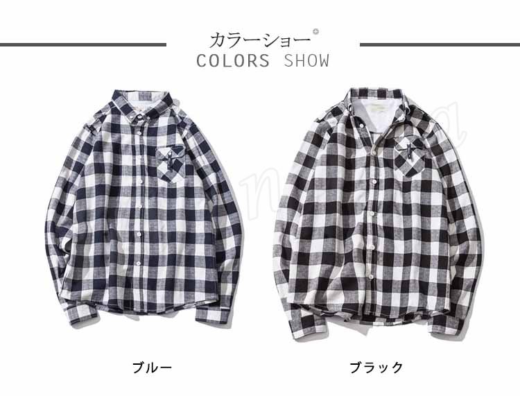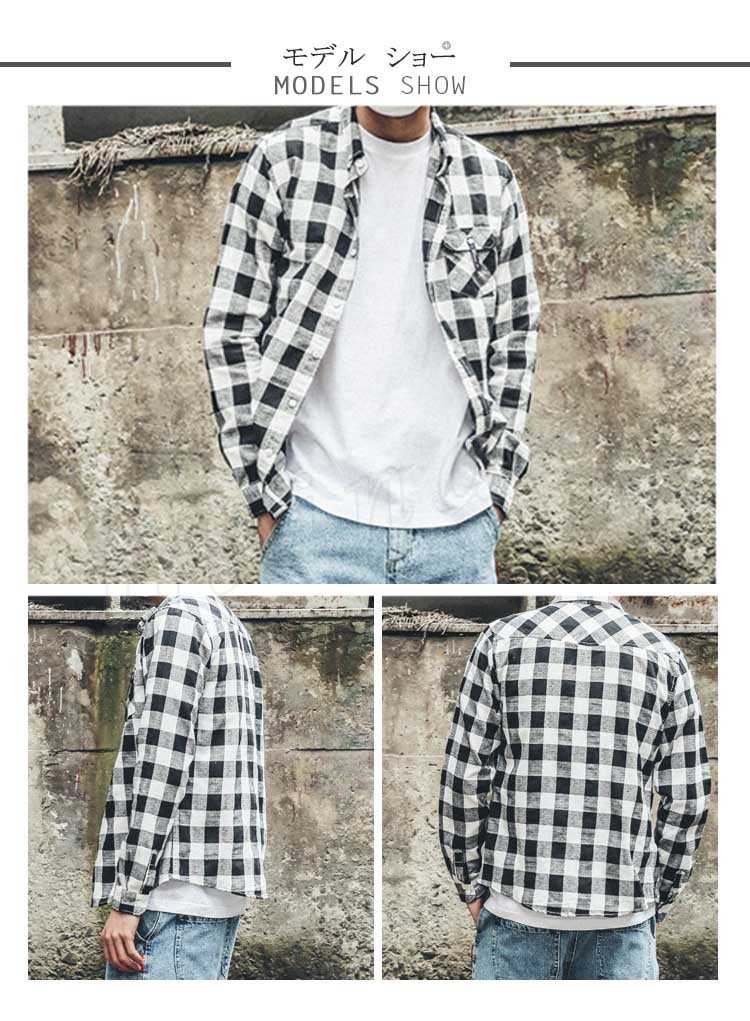 カジュアルシャツ メンズ トップス シャツ 長袖 チェック柄 シンプル カジュアル 胸ポケット ボタンダウン ゆったり メンズファッション?