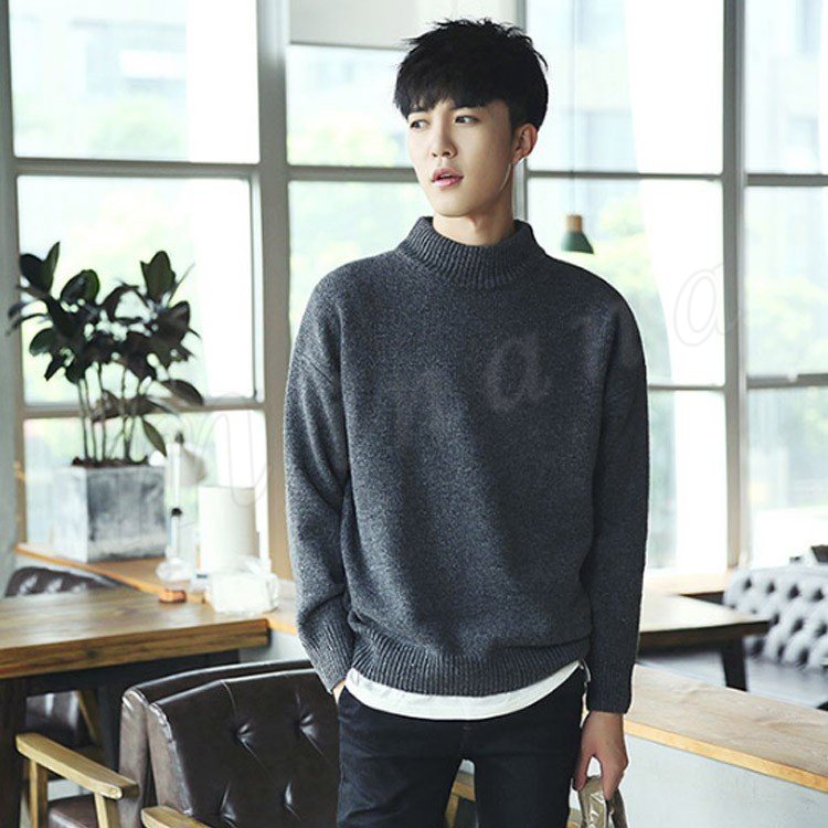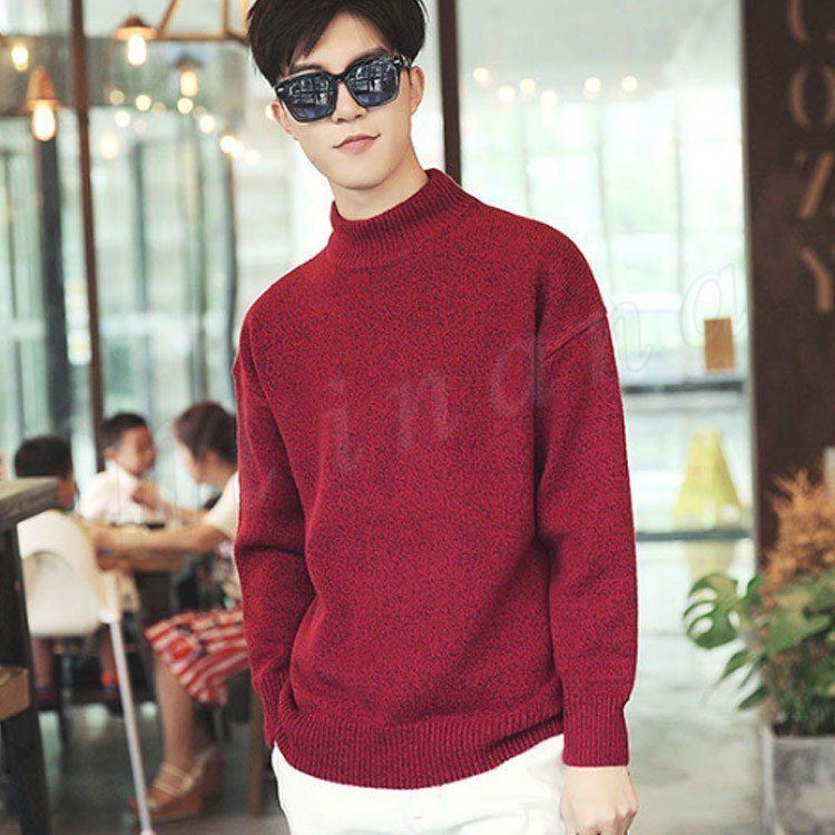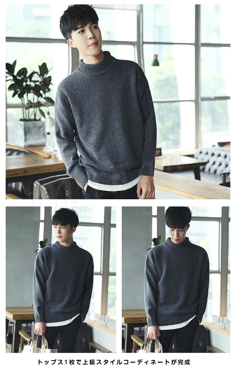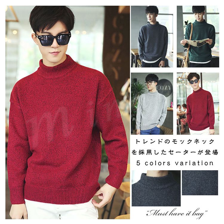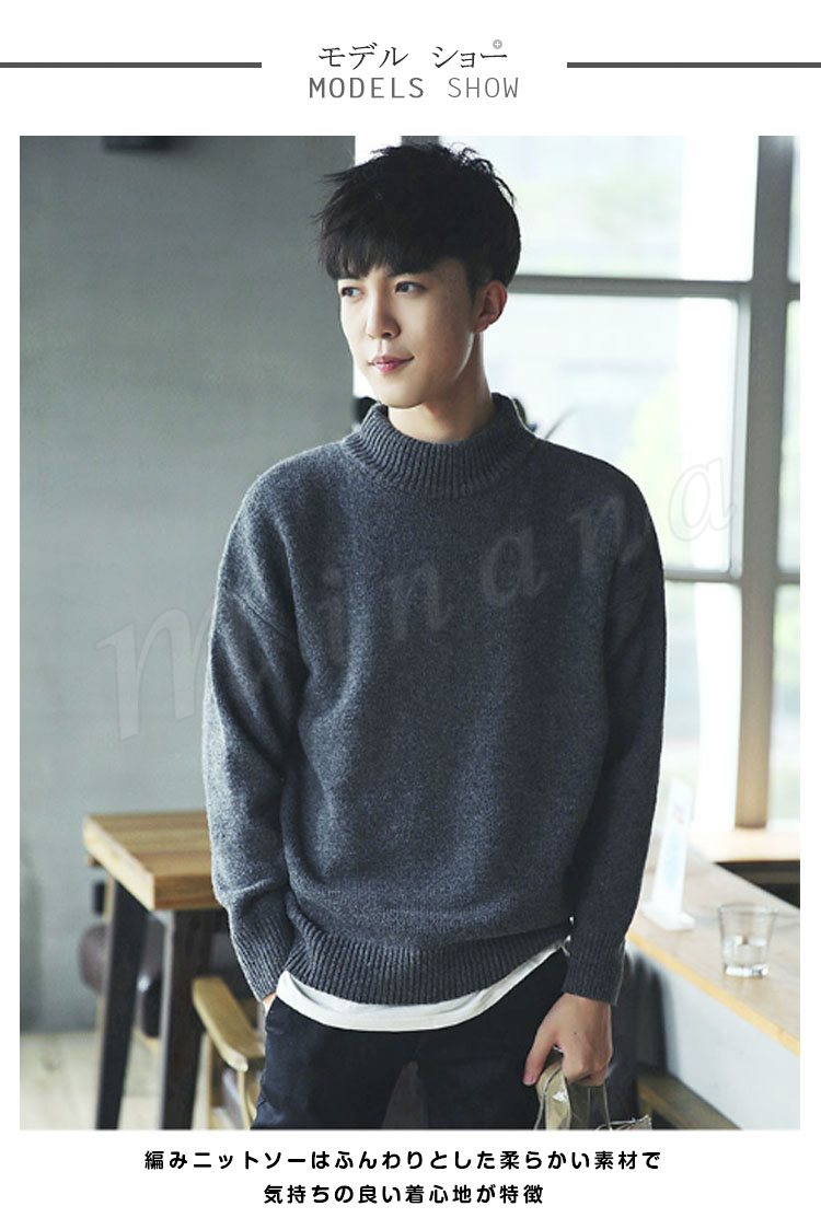 ニットセーター/メンズ/ニット/長袖/セーター/クルーネック/モックネック/メンズ/トップス/プルオーバー/ゆったり/無地/リラックス/カジュ