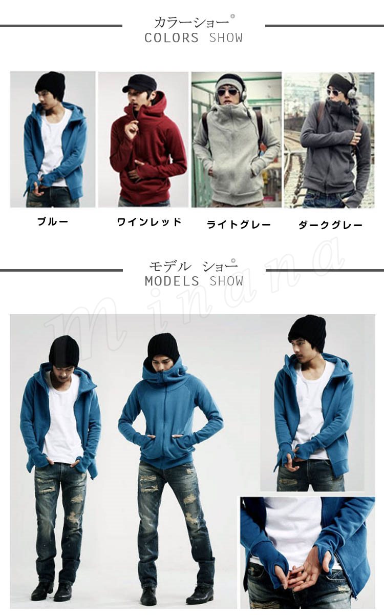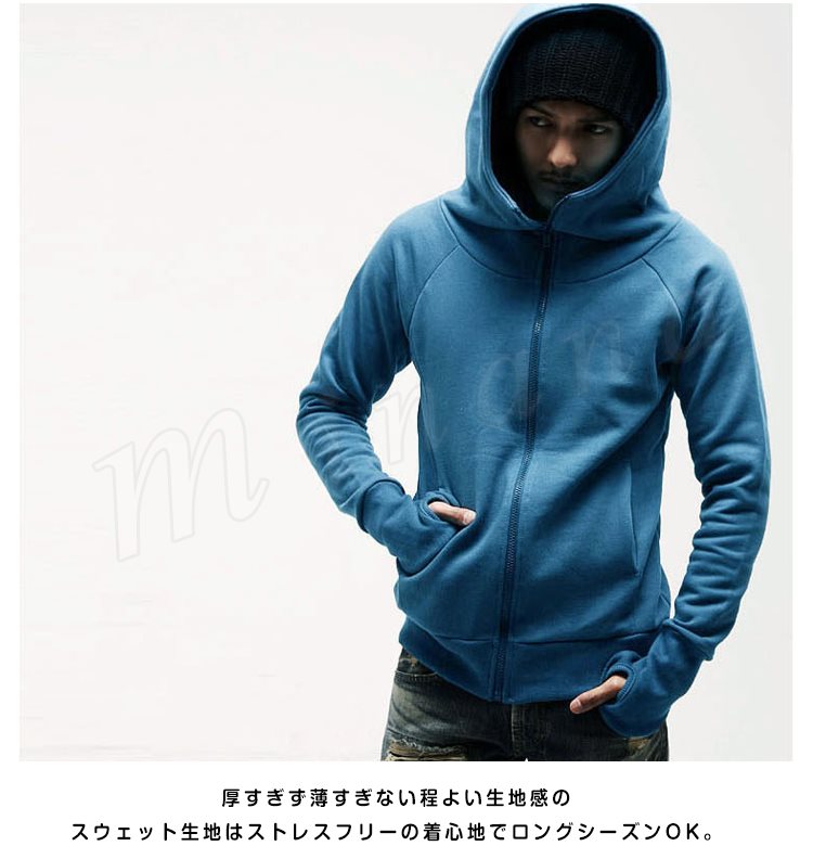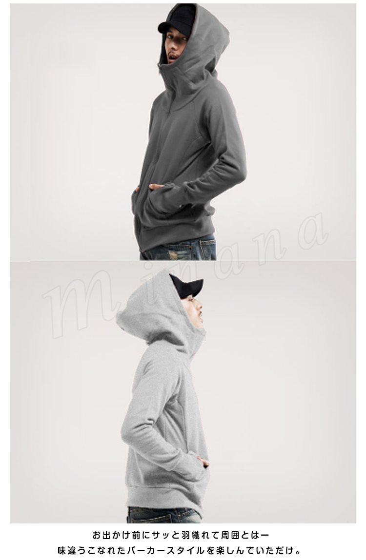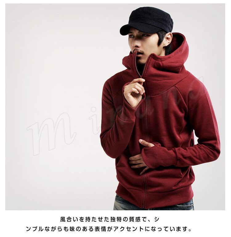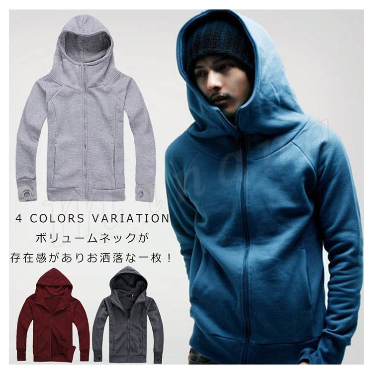スウェットパーカー メンズ ボリュームネック ジップパーカー 裏ボアパーカー 無地パーカー 大きいフード付きパーカー 春秋パーカー