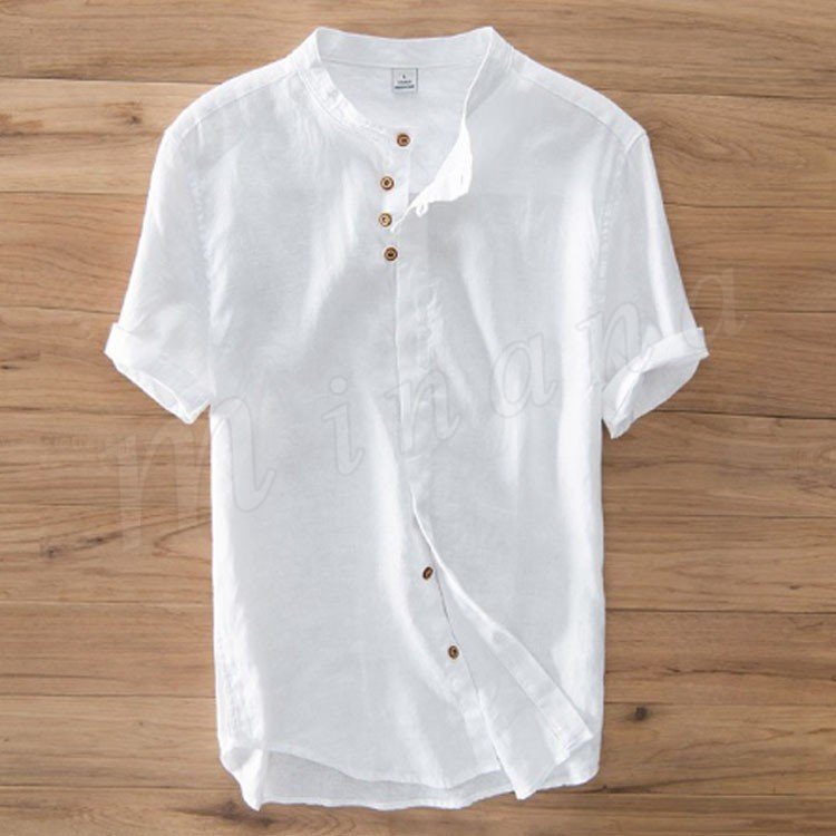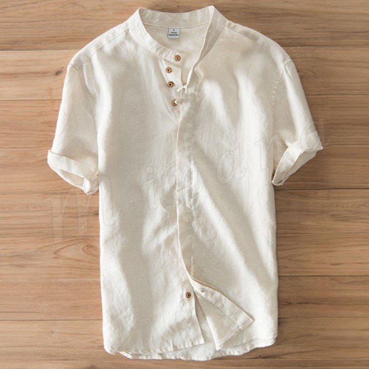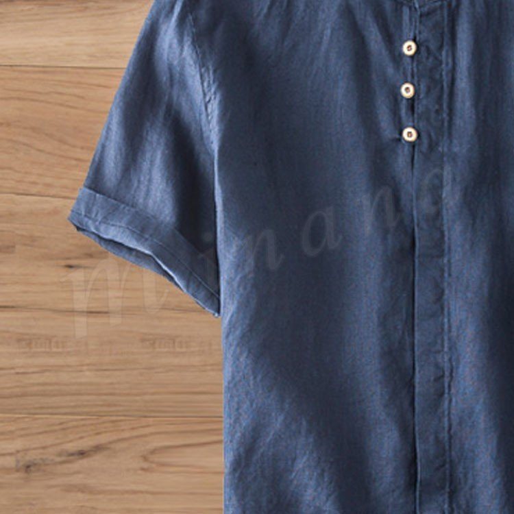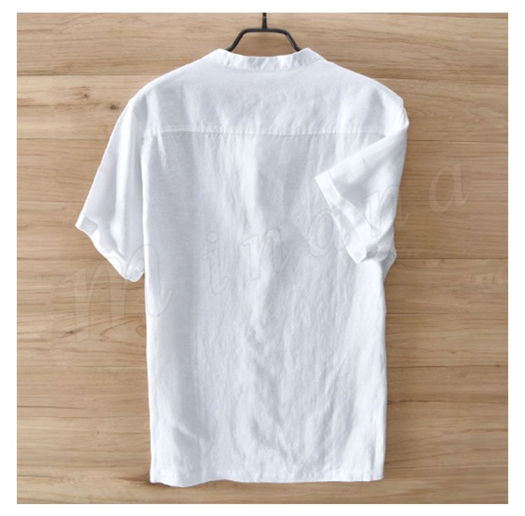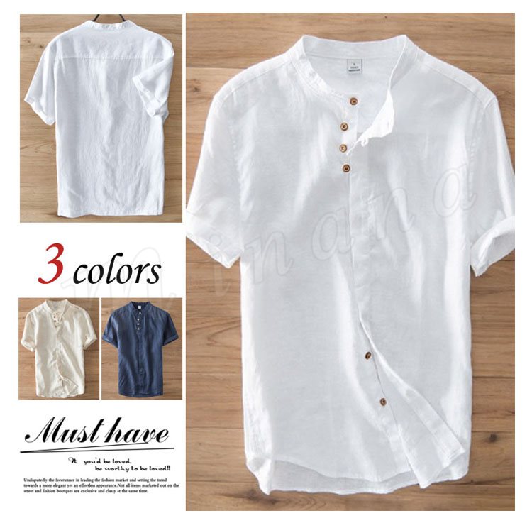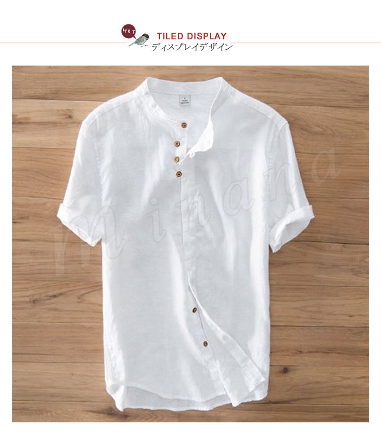 半袖シャツ メンズ リネンシャツ 麻シャツ カジュアルシャツ おもしろボタン 男性 30代 40代
