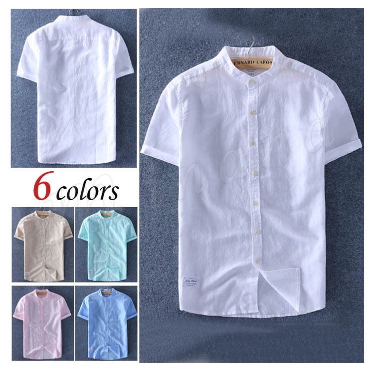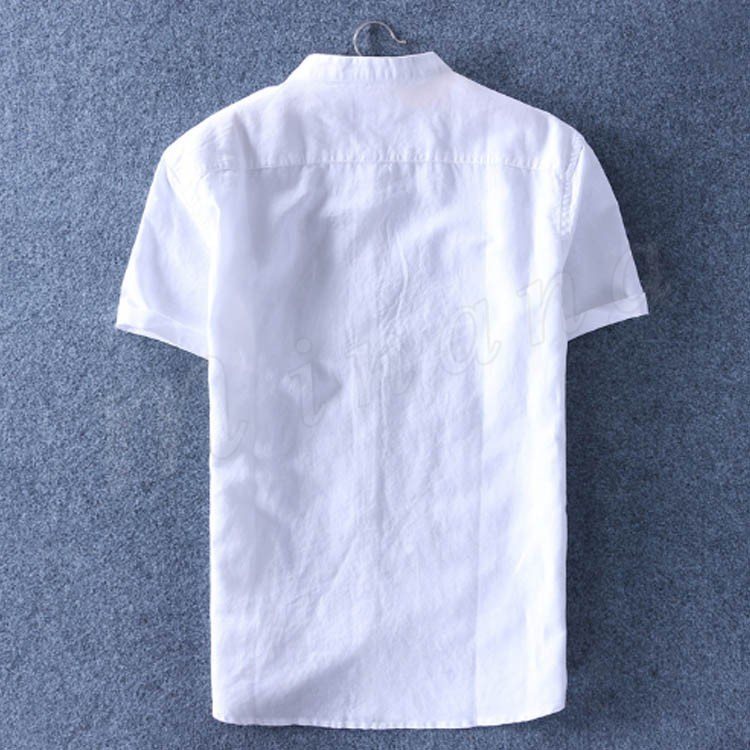 リネンシャツメンズ半袖綿麻無地シンプルカジュアル大きいサイズビジネスファッションスリムスリム紳士服薄手おしゃれオフィス