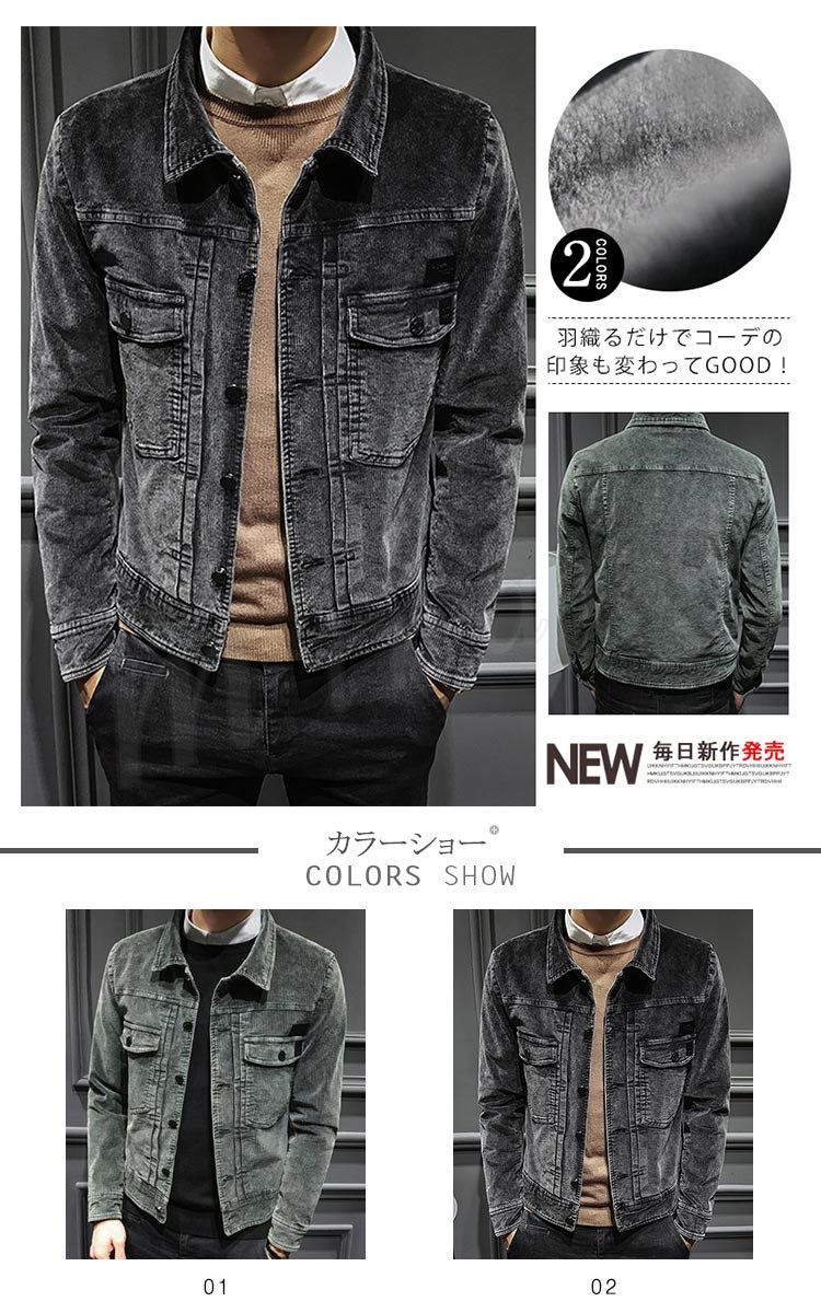 裏起毛 ジャケット メンズ デニムジャケット風 アウター コーデュロイ カジュアル ジャケット かっこいい 春秋冬 新作