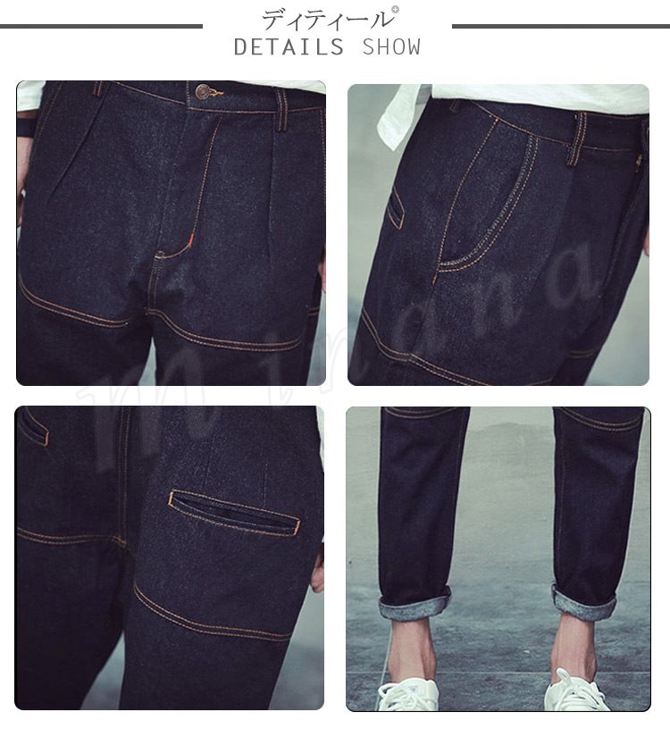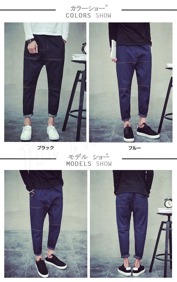 送料無料ジーンズ デニムパンツ 無地 メンズファション サルエルパンツ ボトムス デニム シンプル スリムパンツ クラシック風 切替 男の子