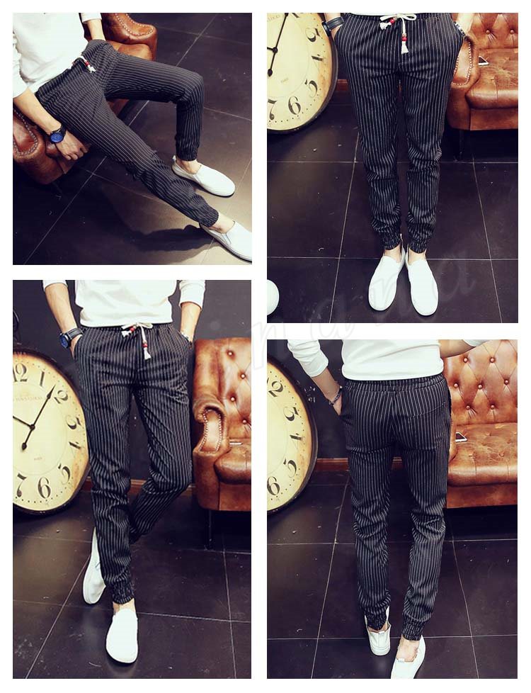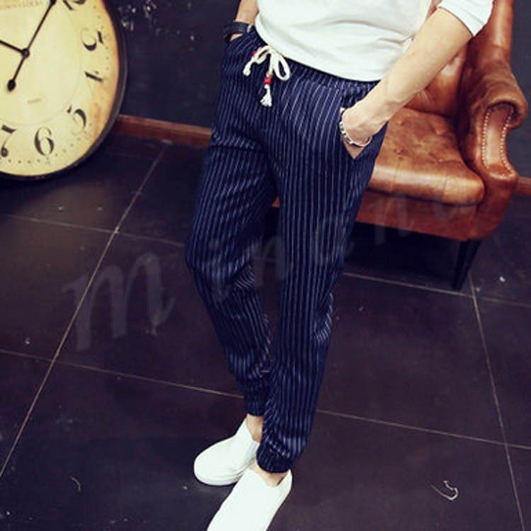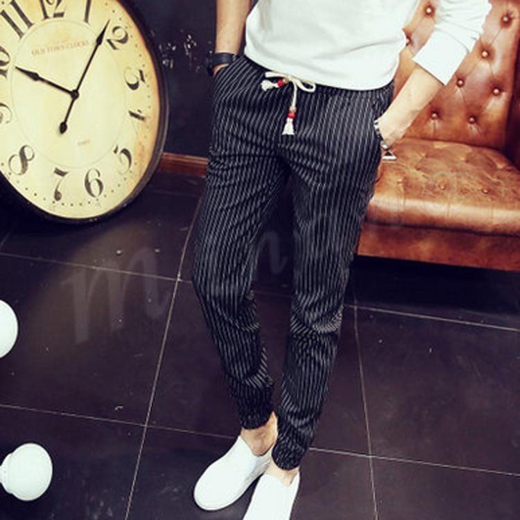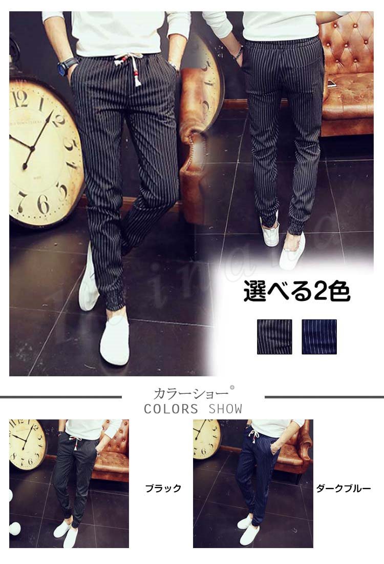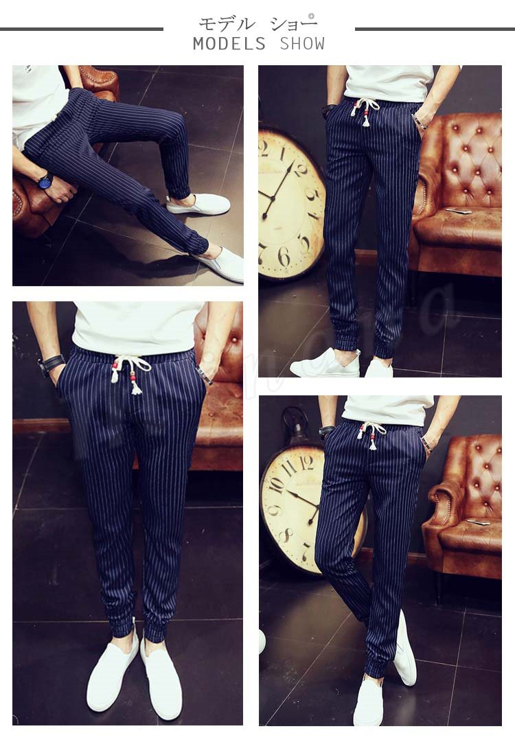 送料無料長パンツ イージーパンツ ストライプ柄 メンズファション 9分パンツ サルエルパンツ スリム クロップドパンツ 韓国ファション