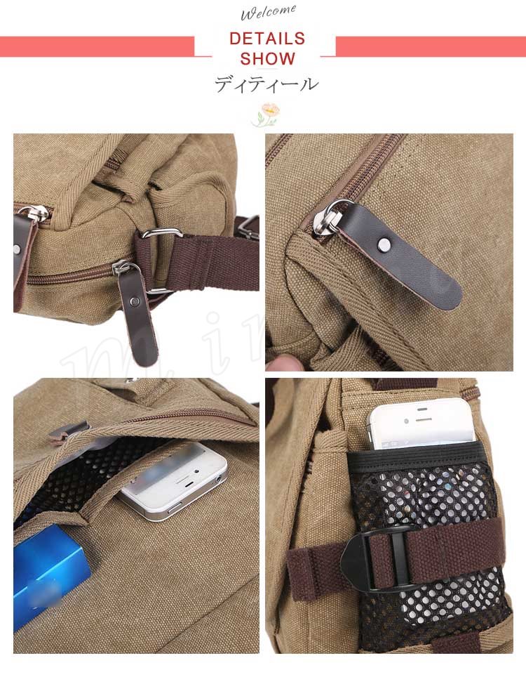 ショルダーバッグ メンズ 斜めがけバッグ 肩がけ ミリタリー 2way ショルダー 帆布 キャンバス カジュアル ズック カバン 大容量 通勤 通学