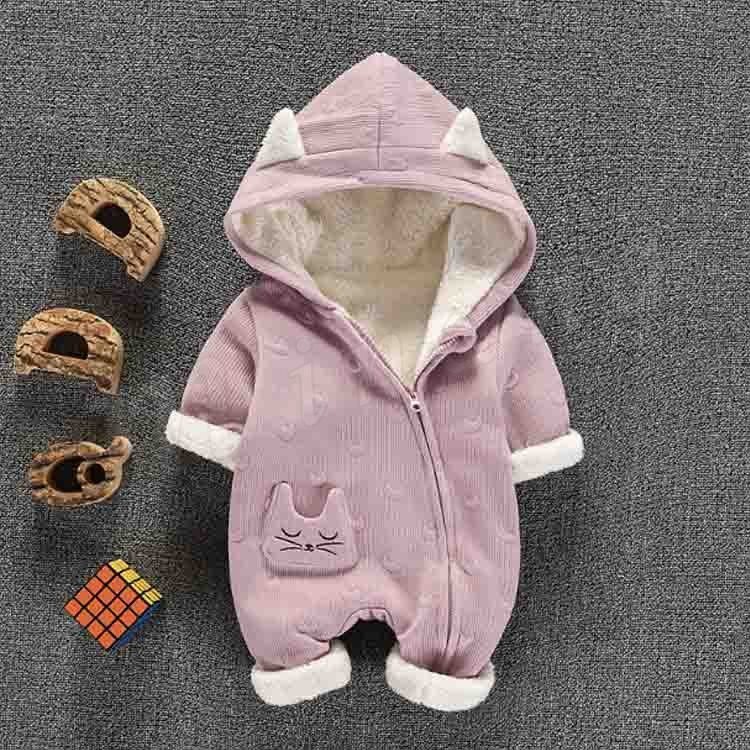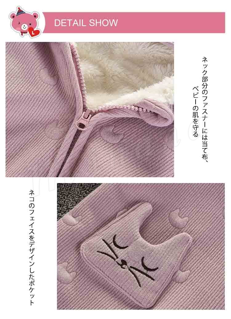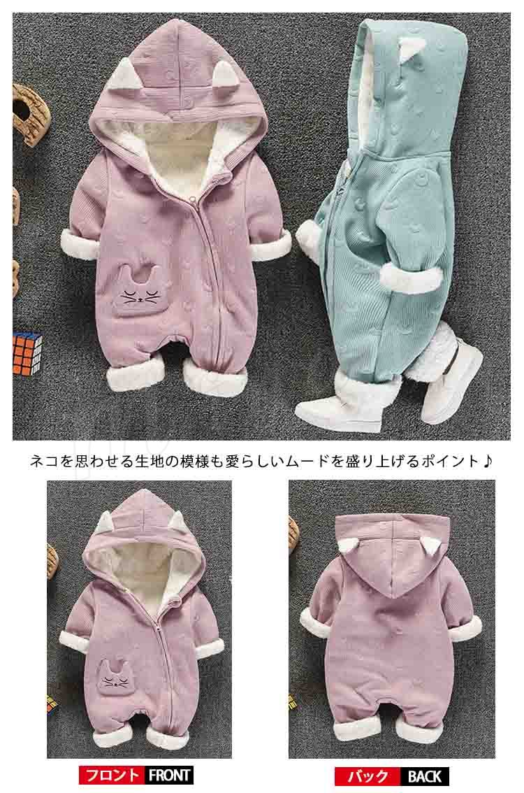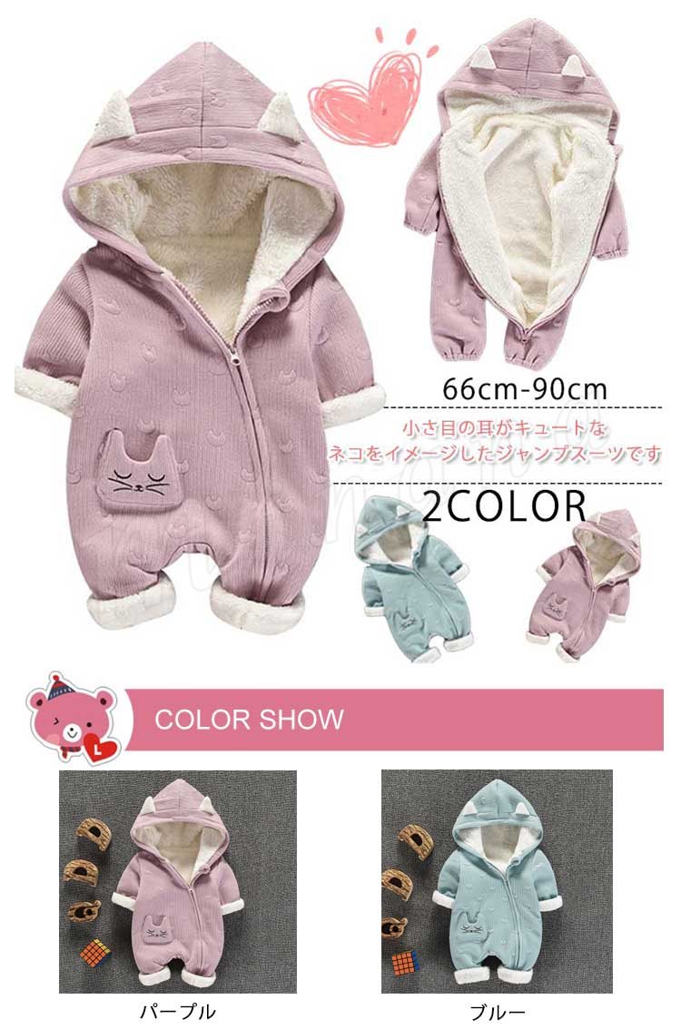 小さ目の耳がキュートなネコをイメージしたジャンプスーツ ベビー服 女の子 男の子 カバーオール ロンパース 可愛い モコモコ ファスナー お洒