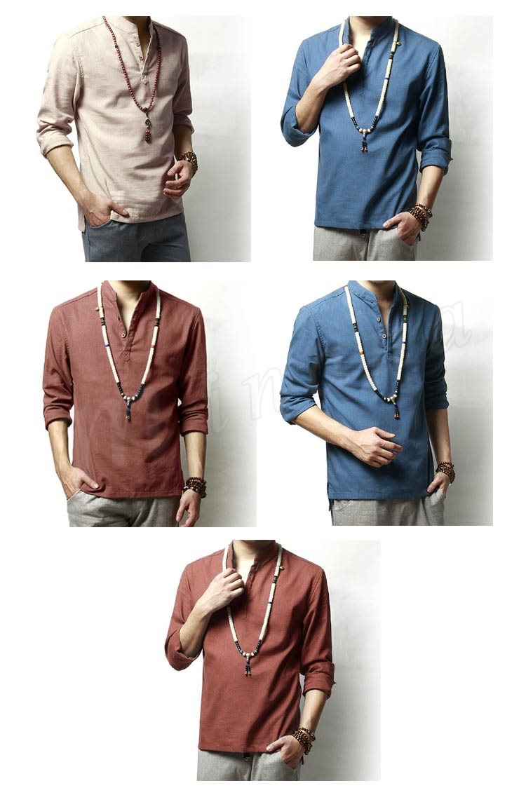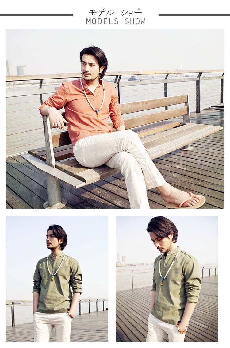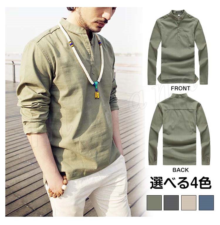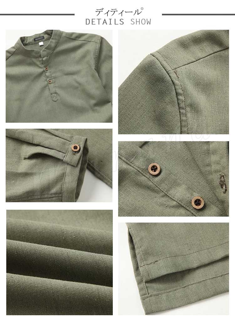 送料無料シャツ メンズ 半袖 リネンシャツ 立ち襟 スタンドカラー 綿麻シャツ ブラウス 綿麻 半袖シャツ ゆるシャツ 無地シャツ カジュアルシャツ 清涼感た