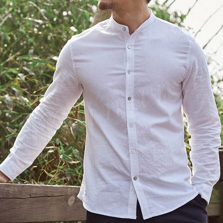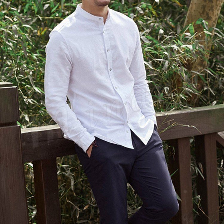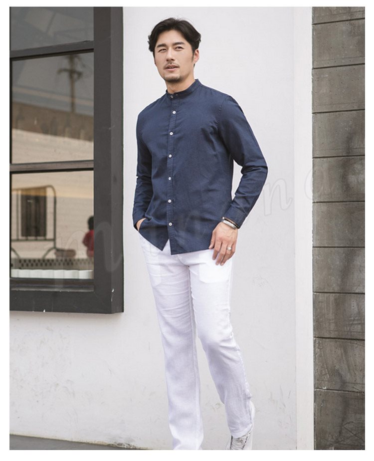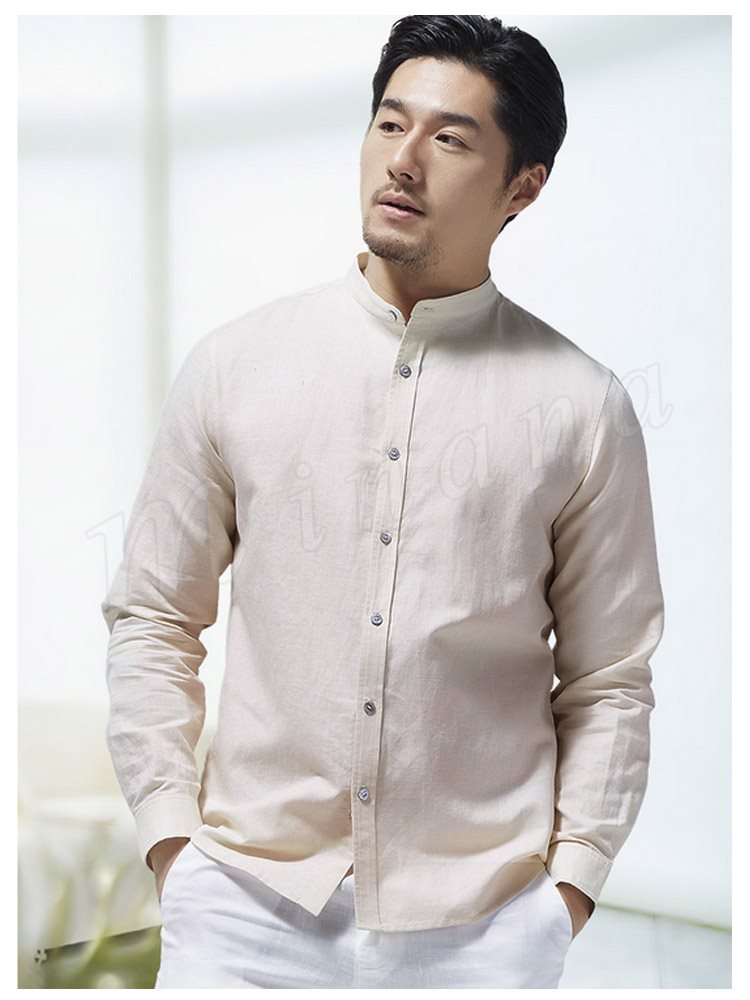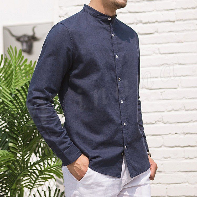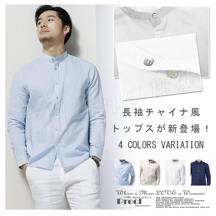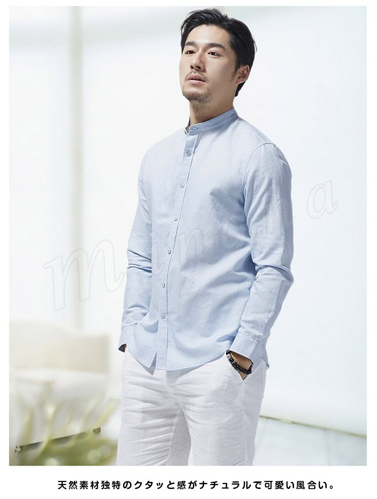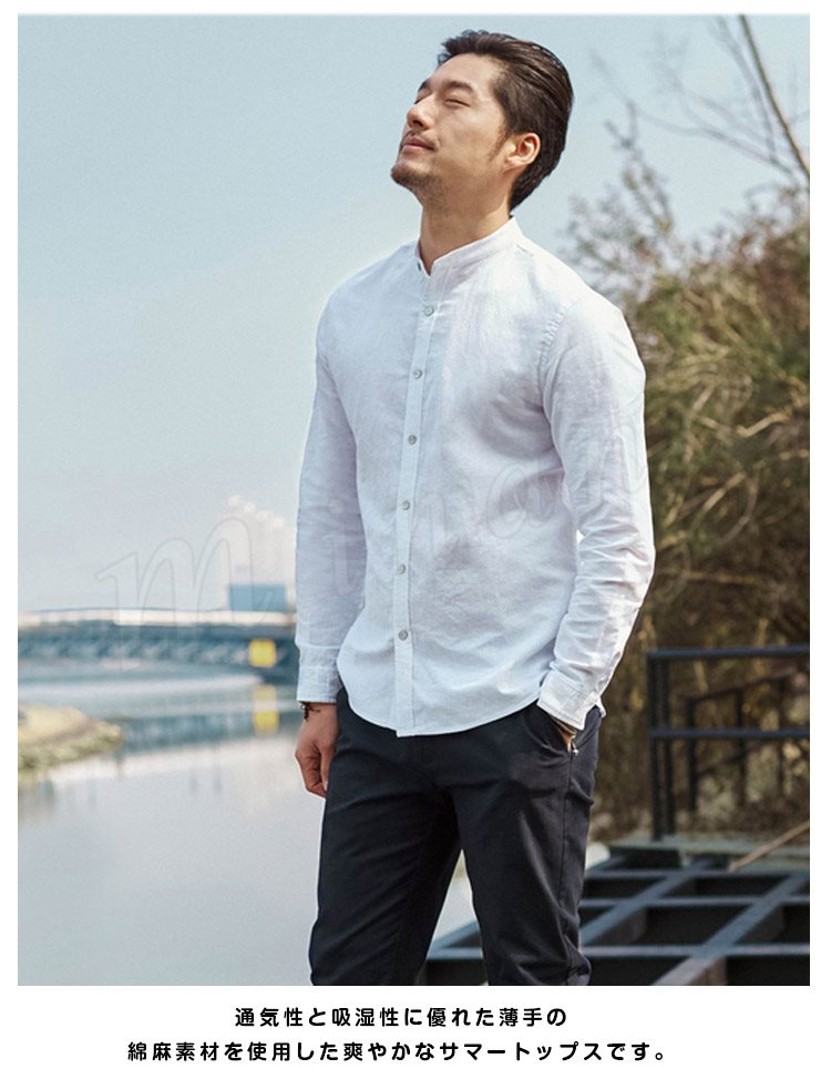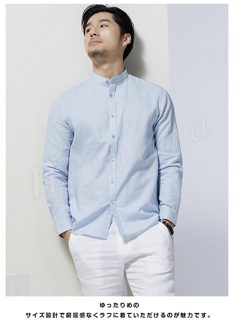 綿麻 シャツ 長袖 チャイナ風 トップス リネン シャツ トップス ナチュラル ゆったり メンズ