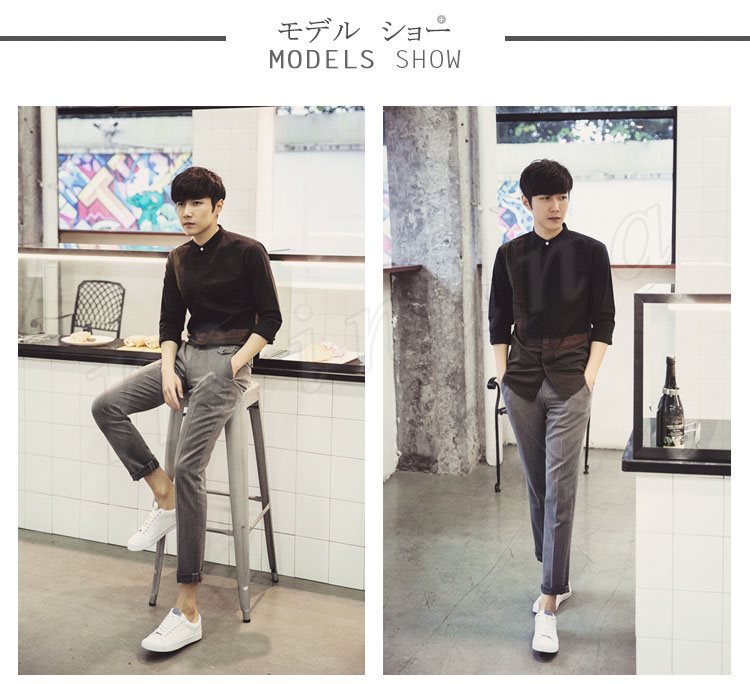 送料無料カジュアルシャツ 長袖 シャツメンズ スタンドカラー ボタンダウン Yシャツ 立ち襟シャツ カジュアル メンズファッション トップス カジュアルシャツ