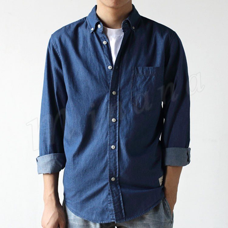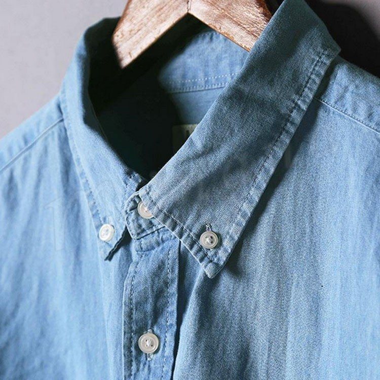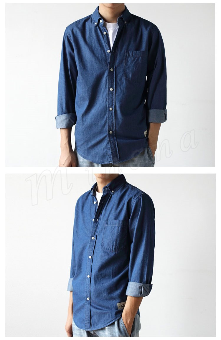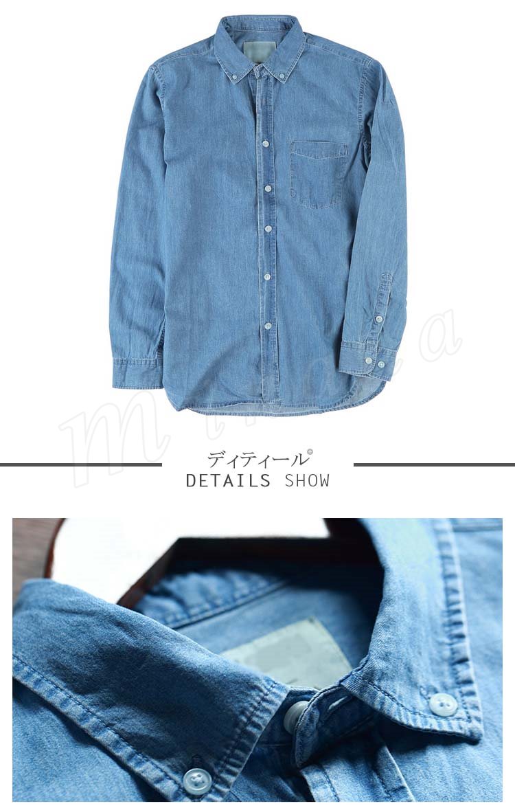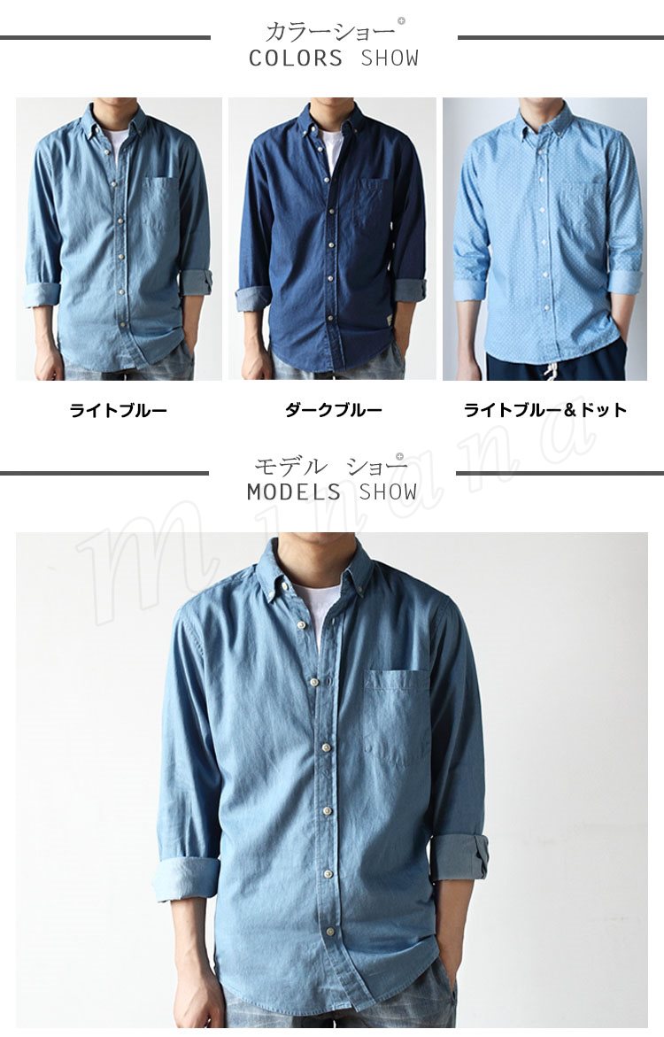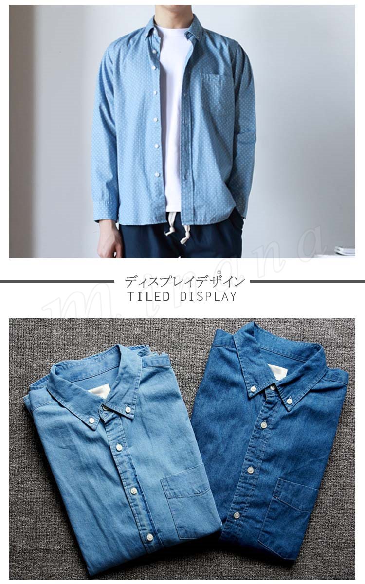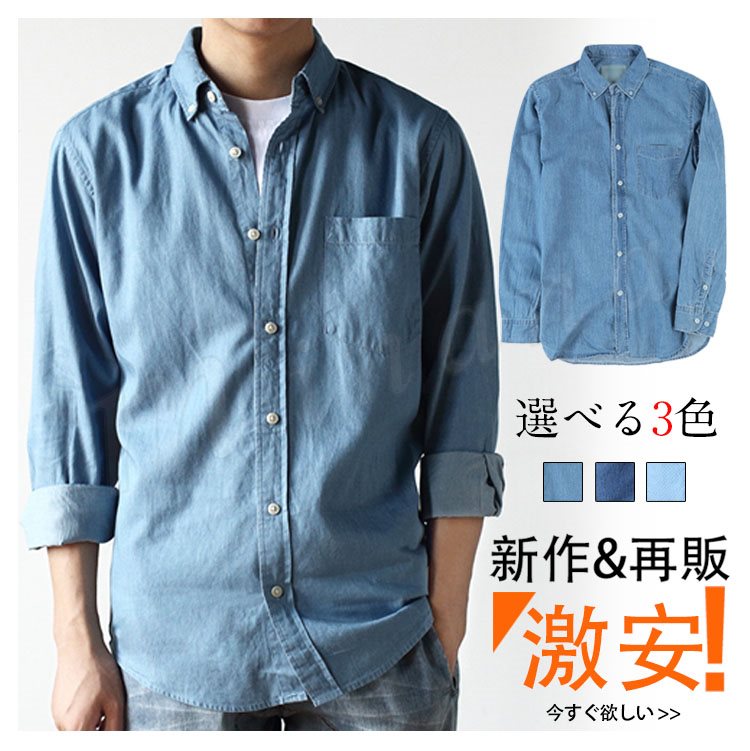 ボタンダウン デニムシャツ 長袖 シャン デニム カジュアルシャツ 長袖 ウエスタンシャツ アメカジ メンズ