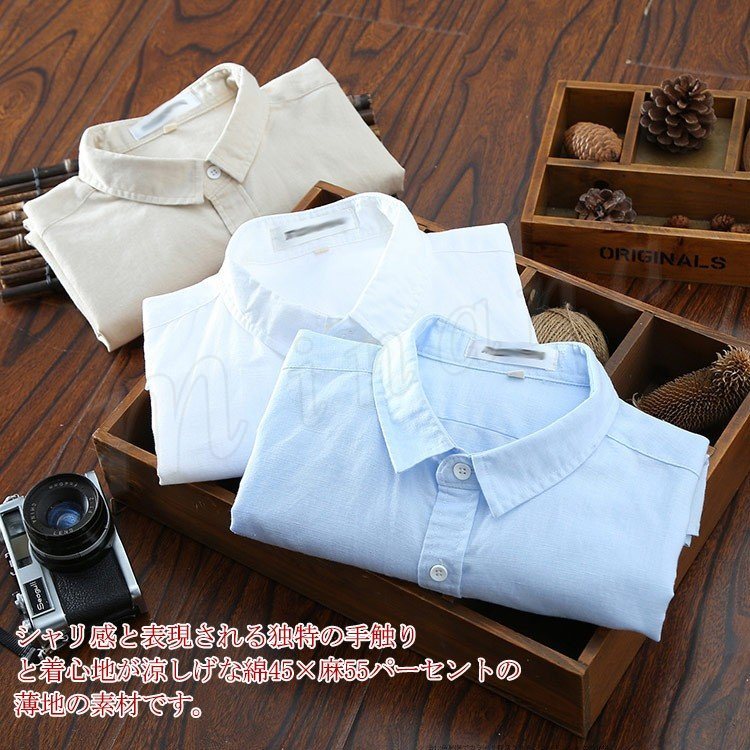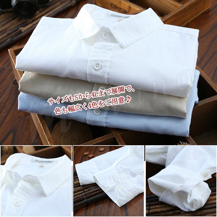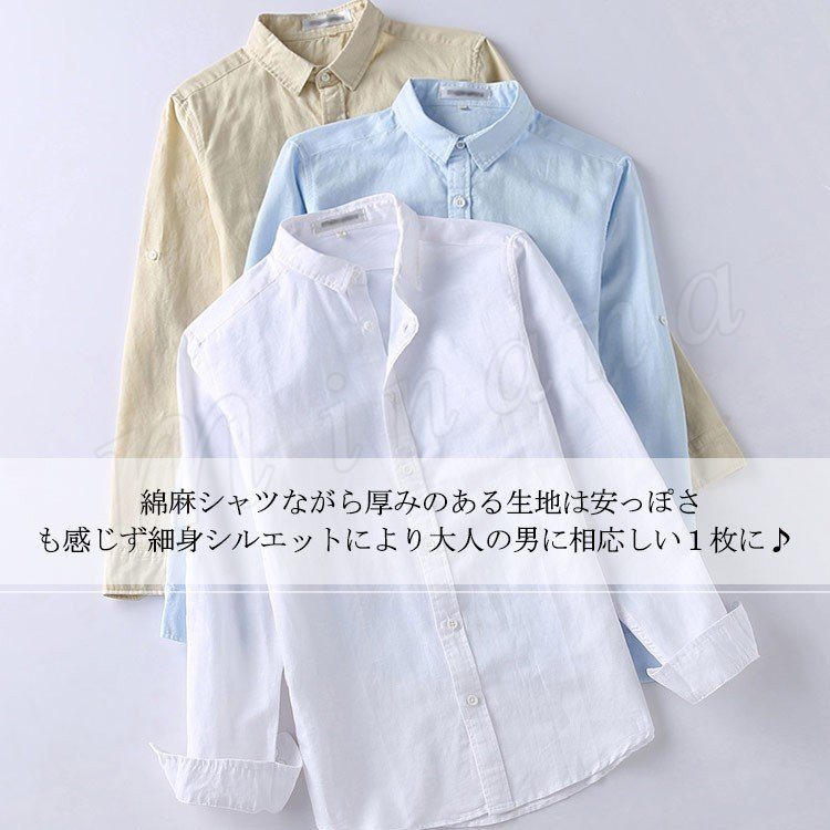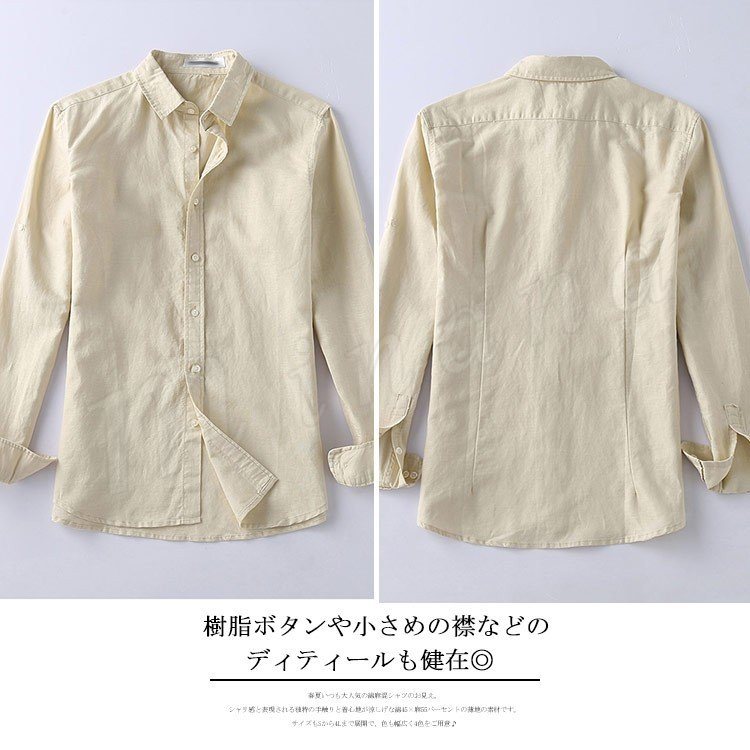メンズシャツ シャツ メンズ リネンコットンシャツ リネンシャツ 綿 麻 シャツ 無地 長袖 トップス カジュアルシャツ 薄手 春 秋