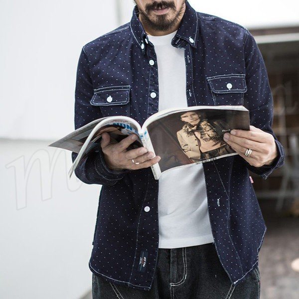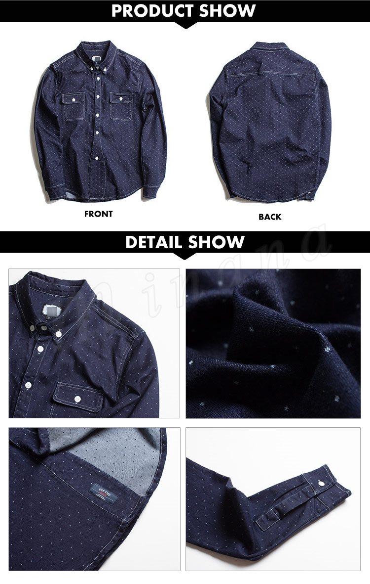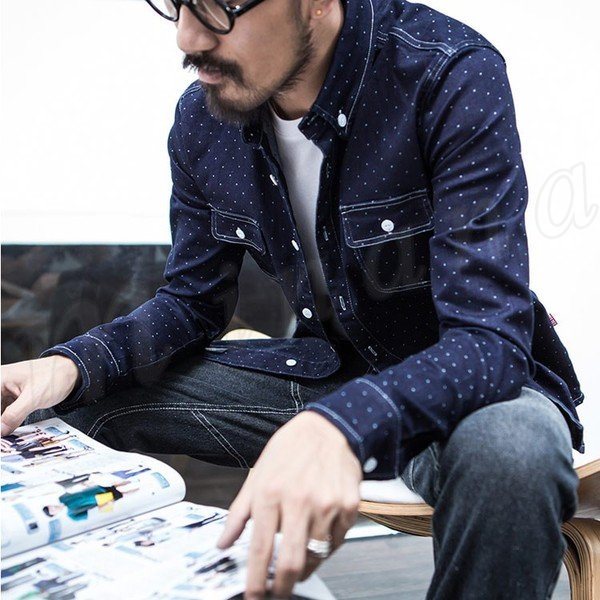 送料無料シャツ ドット柄 前開き 長袖 アウター シャツ トップス メンズ 長袖シャツ 男性用 水玉
