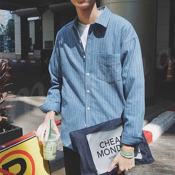 送料無料デニムシャツ メンズ デニム シャツ 長袖シャツ ウエスタンシャツ メンズ アメカジ ヴィンテージ 春シャツ ストライプ柄 デニムジ