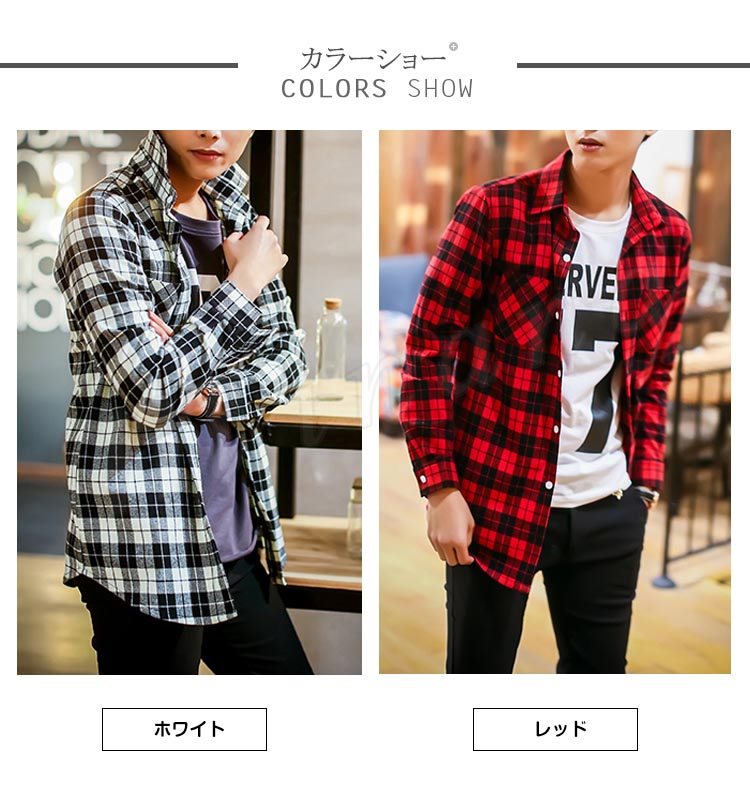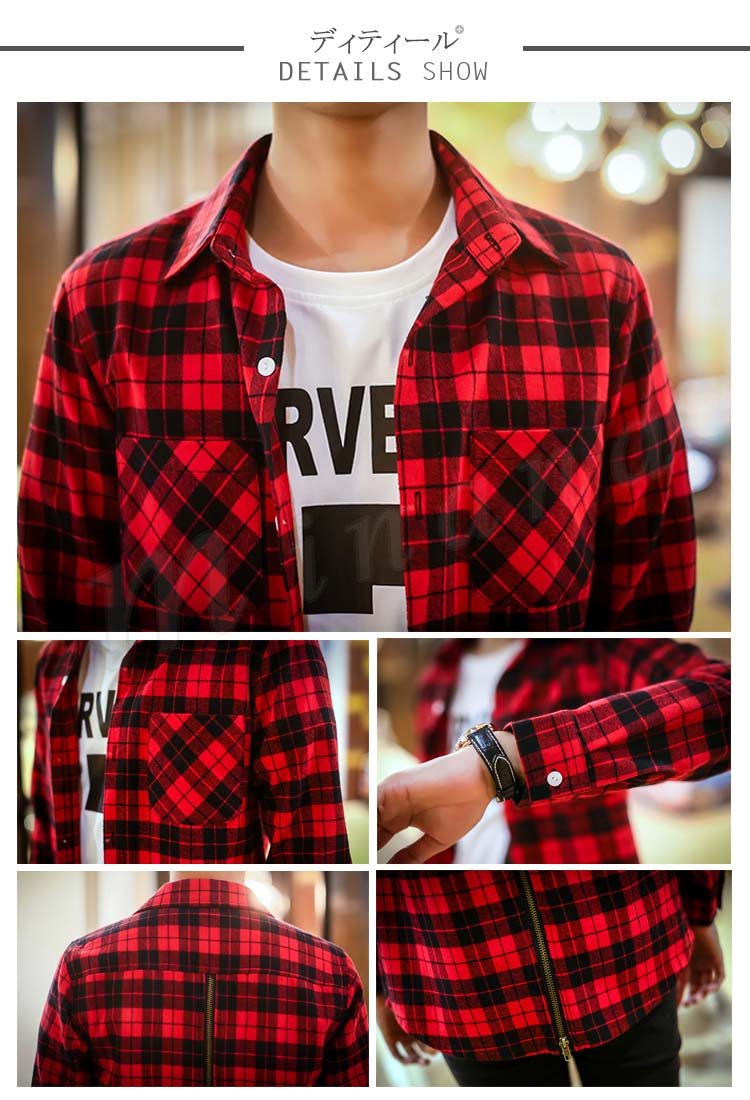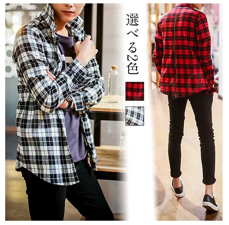 シャツ 長袖 チェック柄シャツ 前開き 折襟 ショート丈 メンズ カジュアルシャツ 大きいサイズ バックジップ デザイン カジュアル