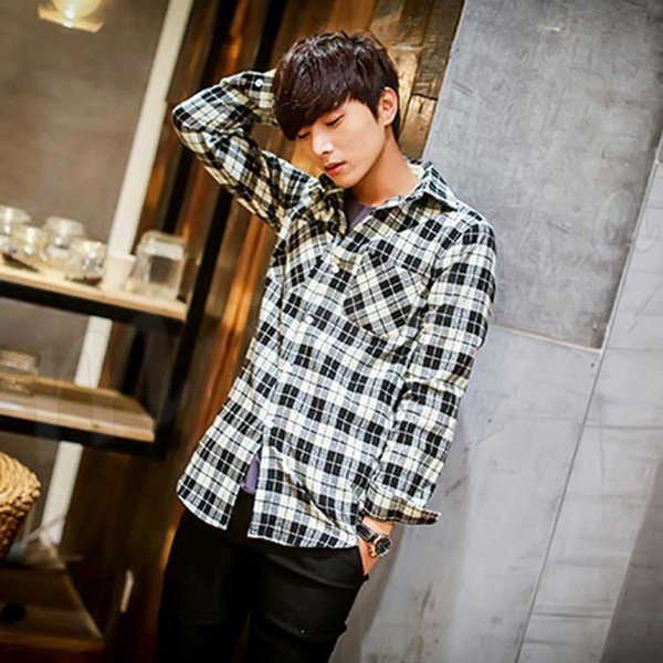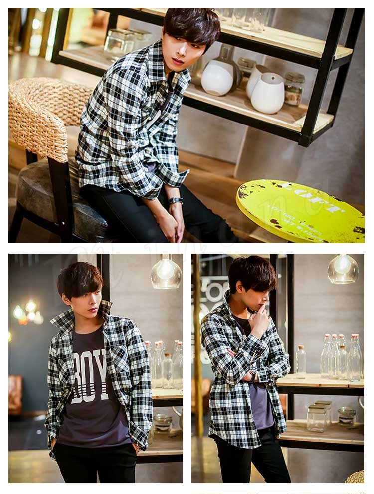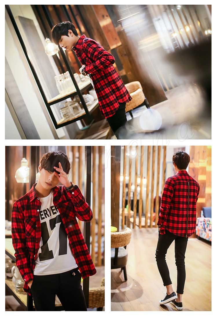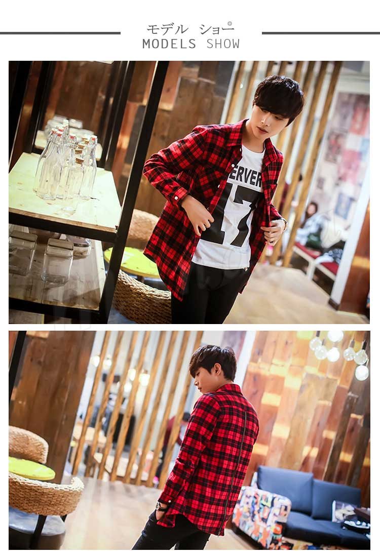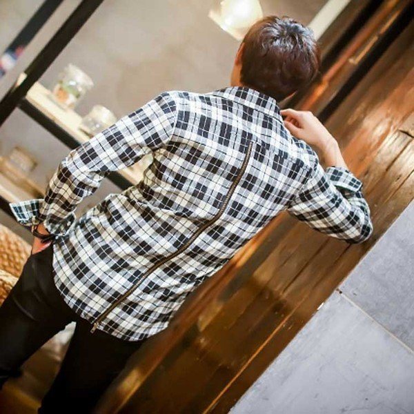 送料無料シャツ 長袖 チェック柄シャツ 前開き 折襟 ショート丈 メンズ カジュアルシャツ 大きいサイズ バックジップ デザイン カジュアル