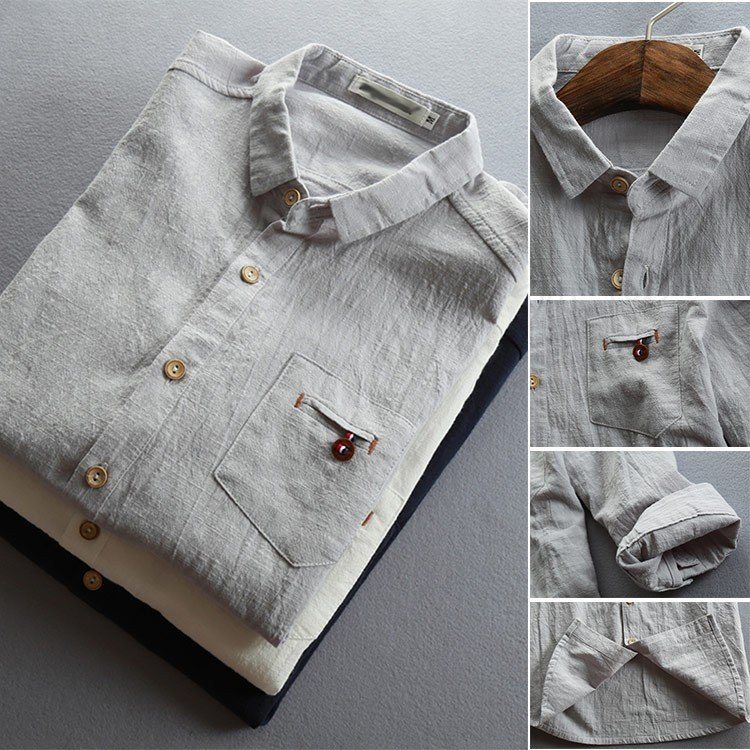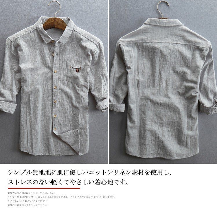 シャツ トップス 綿麻 メンズ リネンシャツ メンズ カジュアルシャツ 五分袖 七分袖 無地シャツ トップス リネン 薄手 春 夏 シンプル