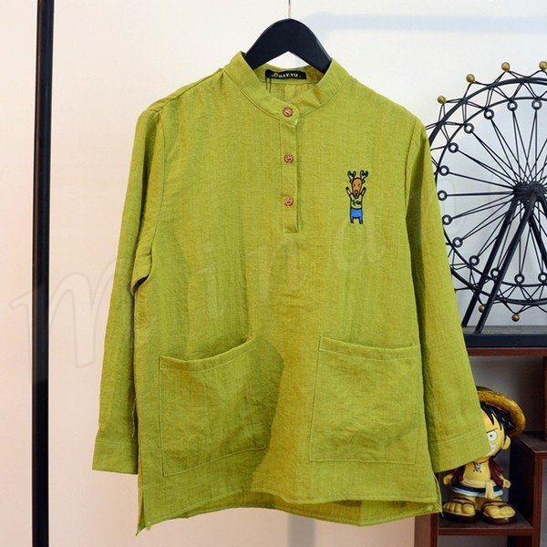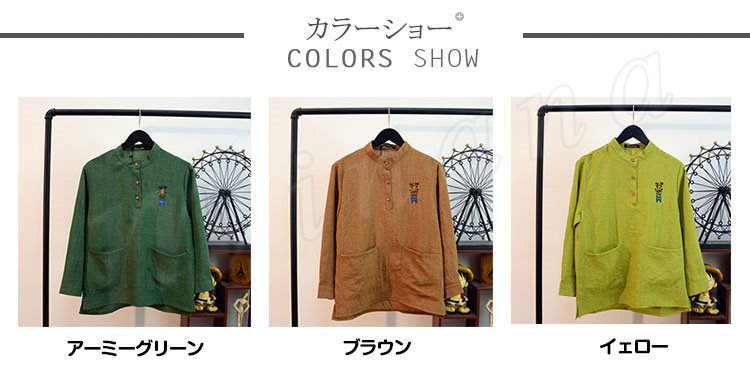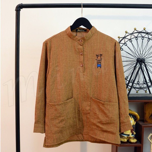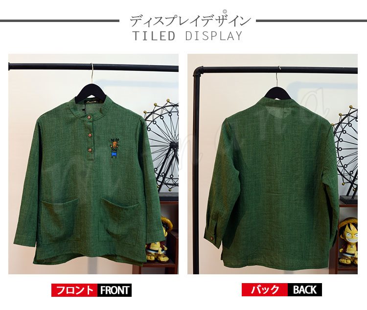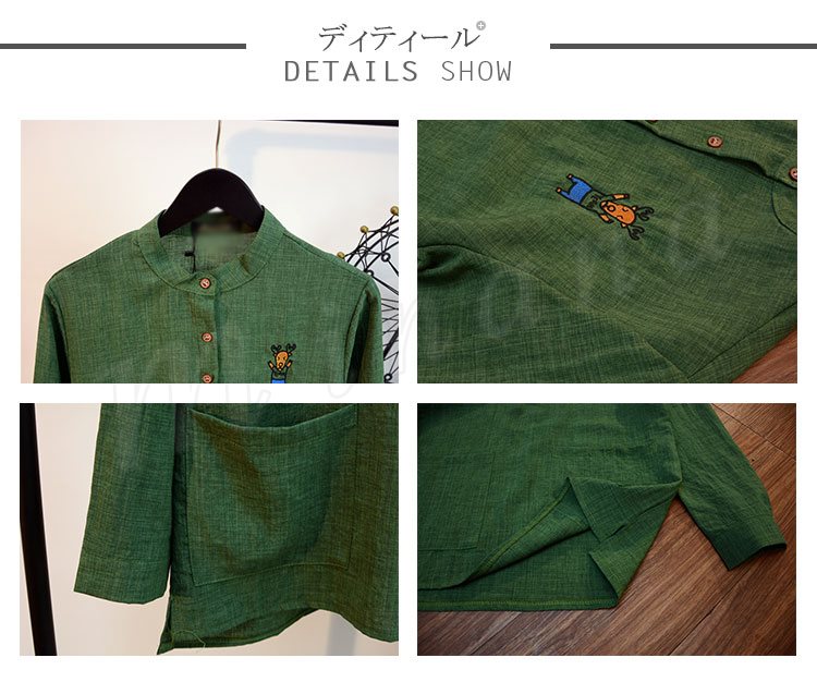 送料無料シャツ メンズ ブラウス 立ち襟 スタンドカラー 綿 コットンブラウス 長袖 チュニック 刺繍シャツ 刺繍アニマル柄シャツ ゆるシャ
