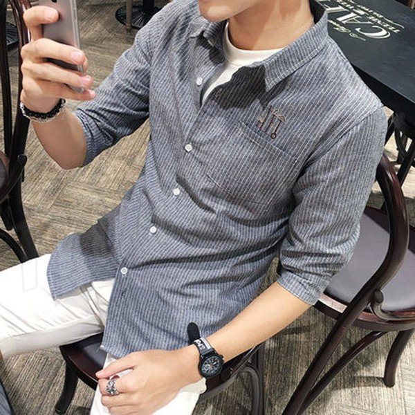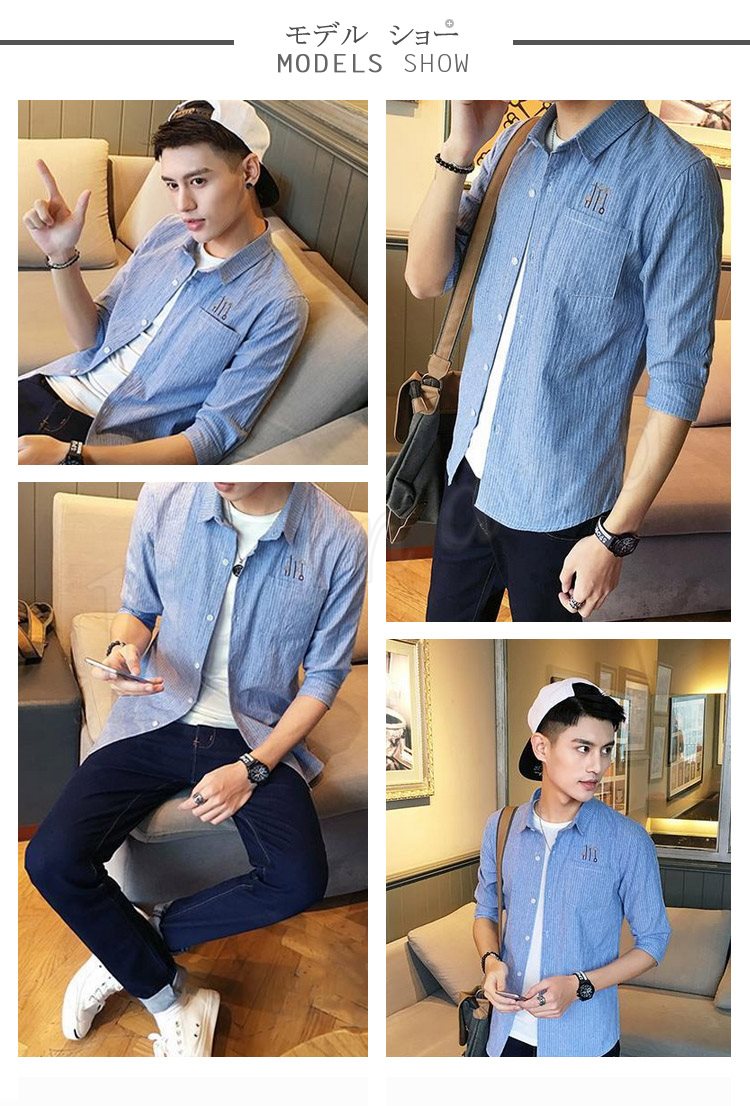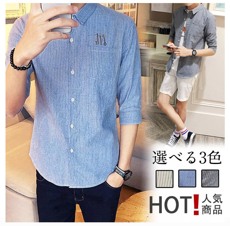 送料無料5分袖 シャツ メンズ ストライブ柄 カジュアルシャツ メンズシャツ ボーダー柄 ウエスタンシャツ トップス 春物 春服