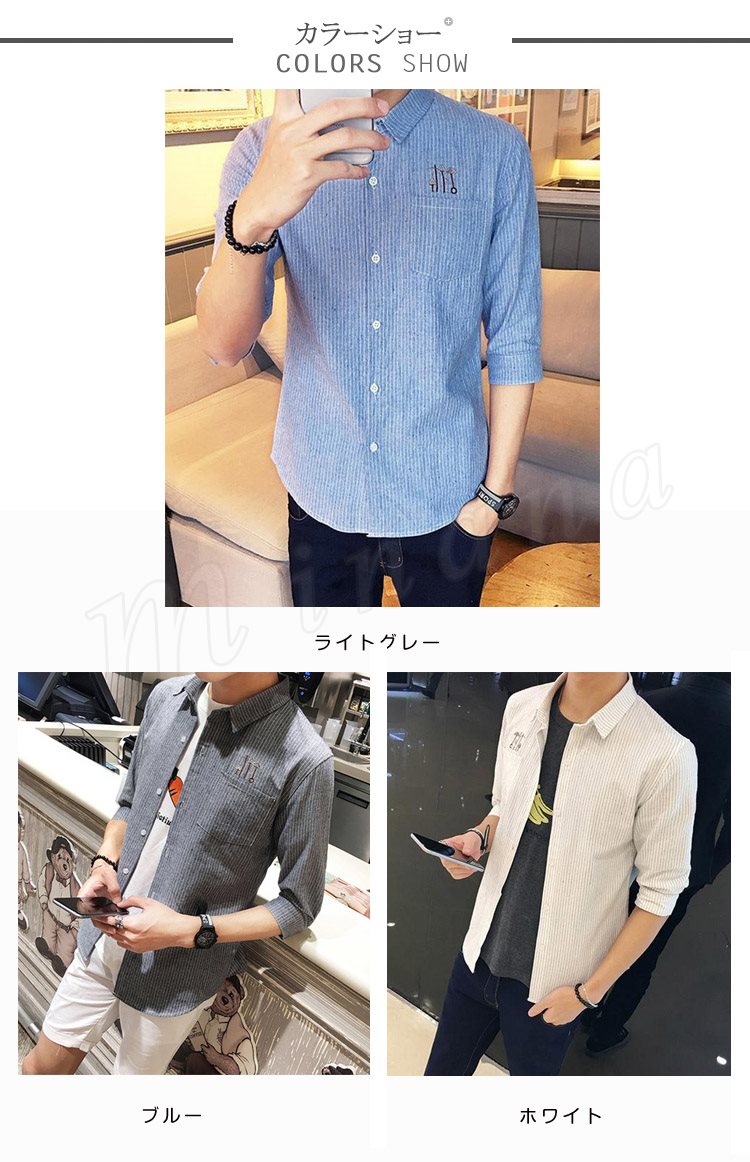 5分袖 シャツ メンズ ストライブ柄 カジュアルシャツ メンズシャツ ボーダー柄 ウエスタンシャツ トップス 春物 春服