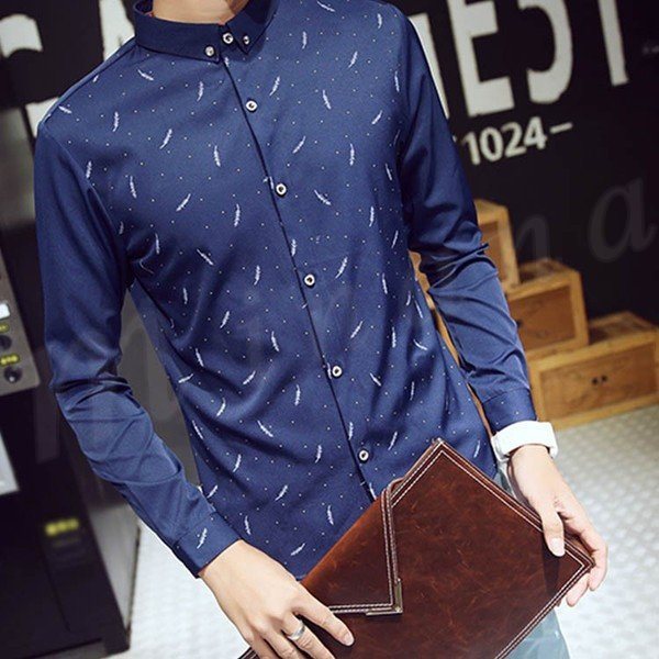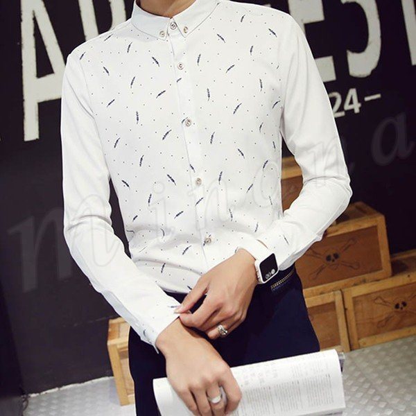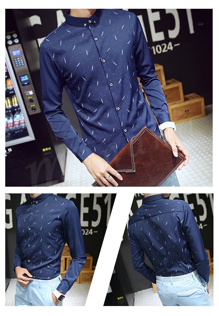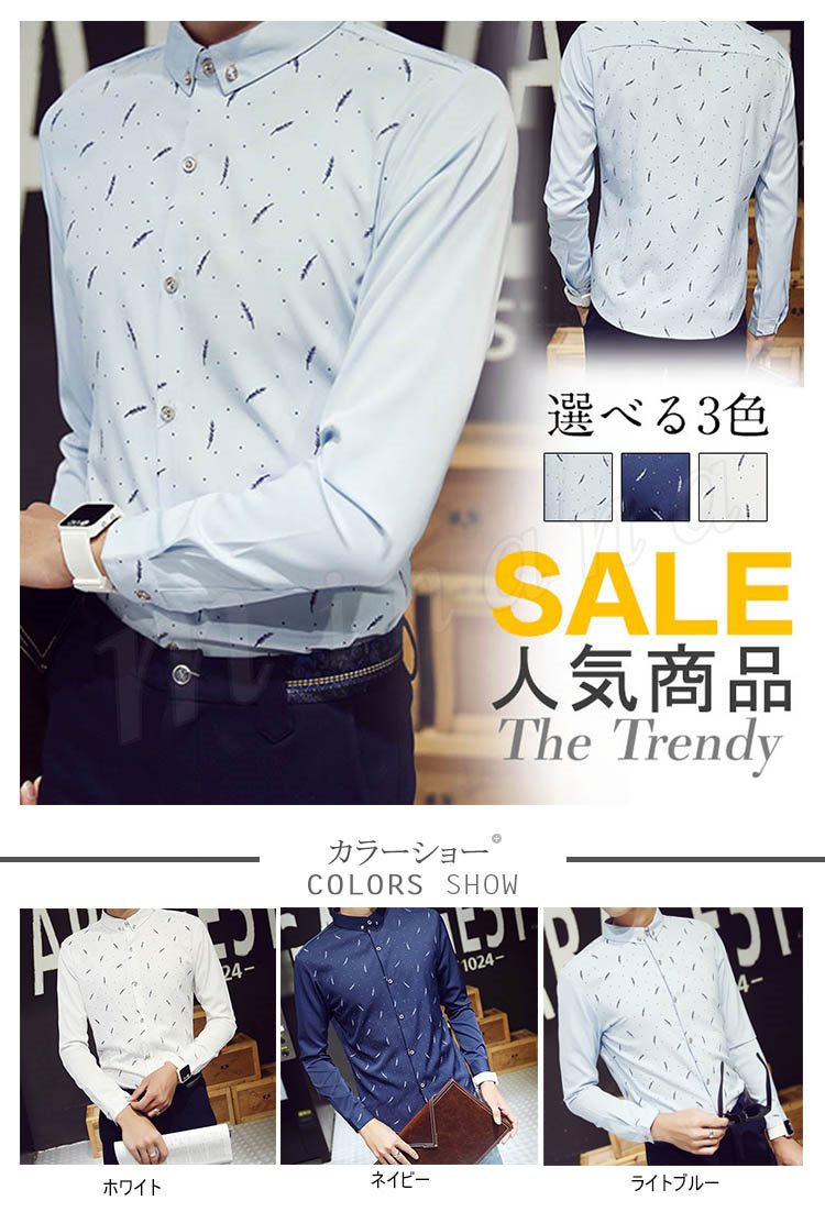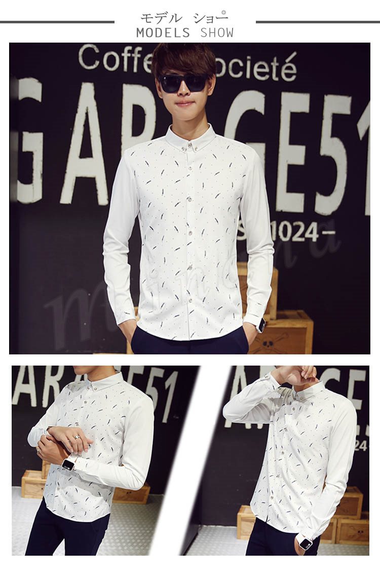 送料無料シャツ 折襟 プリント ビジネスシャツ メンズファション インナー フォーマルシャツ 長袖 トップス カジュアルシャツ 薄地 ビジネ