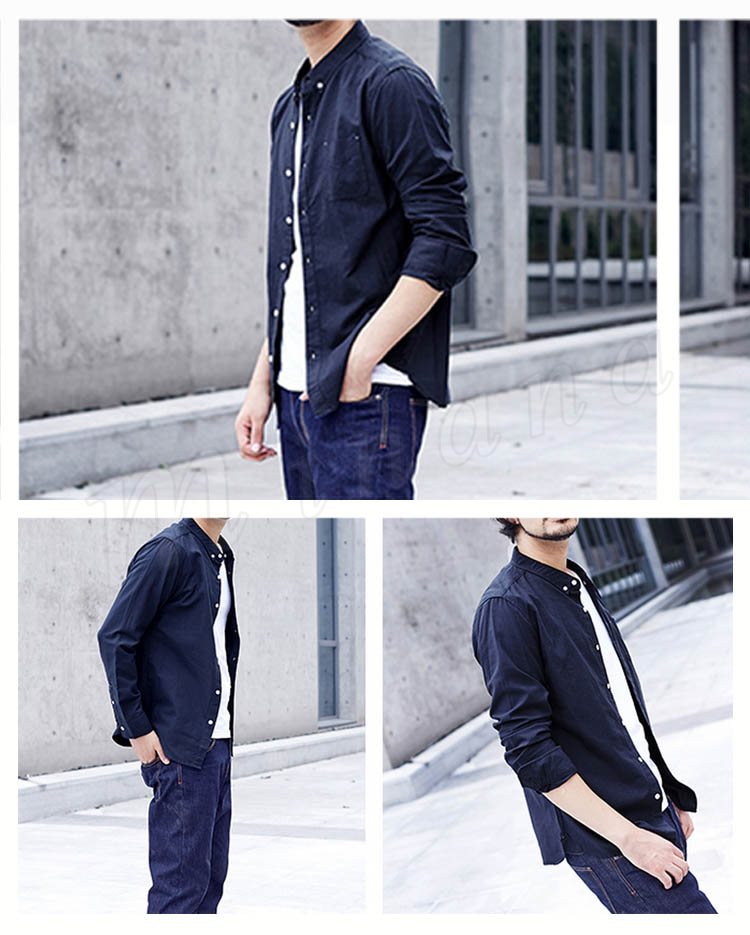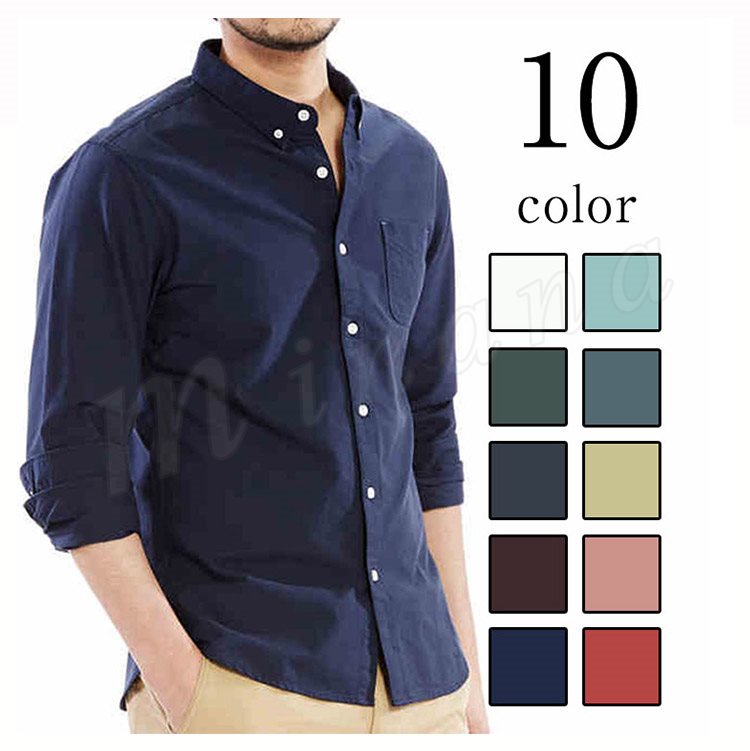 送料無料シャツ 無地 長袖 折襟 スリム ビジネスシャツ スリム 胸ポケット飾り メンズファション フォーマル 出勤 インナー トップス 上