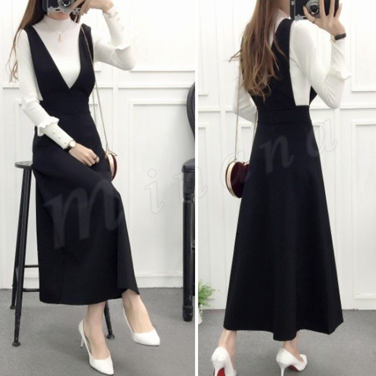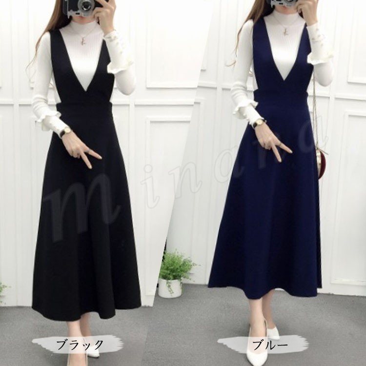 XS-4XLサイズ展開!ロングフレアスカート ジャンパースカート ロングスカート スカート ミモレ丈 膝下丈 フレアスカート ジャンパー サロ
