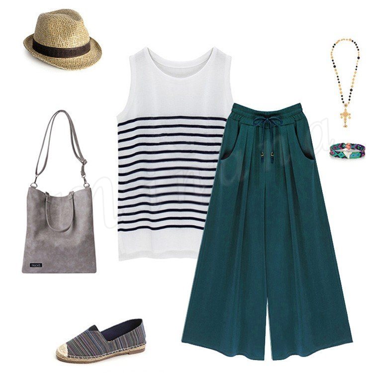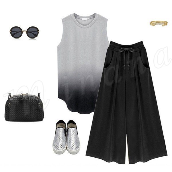 9分丈スカンツワイドパンツレディースフレアパンツハイウエストイージータイプ無地ウエストゴム体型カバーカジュアル2017春新作