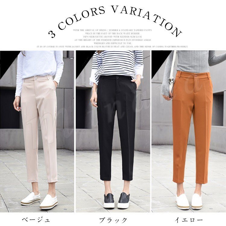 スラックスパンツ テーパードパンツ レディース 9分丈パンツ ボトムス パンツ スラックス テーパード 黒 ベージュ イエロー 通勤 春 秋