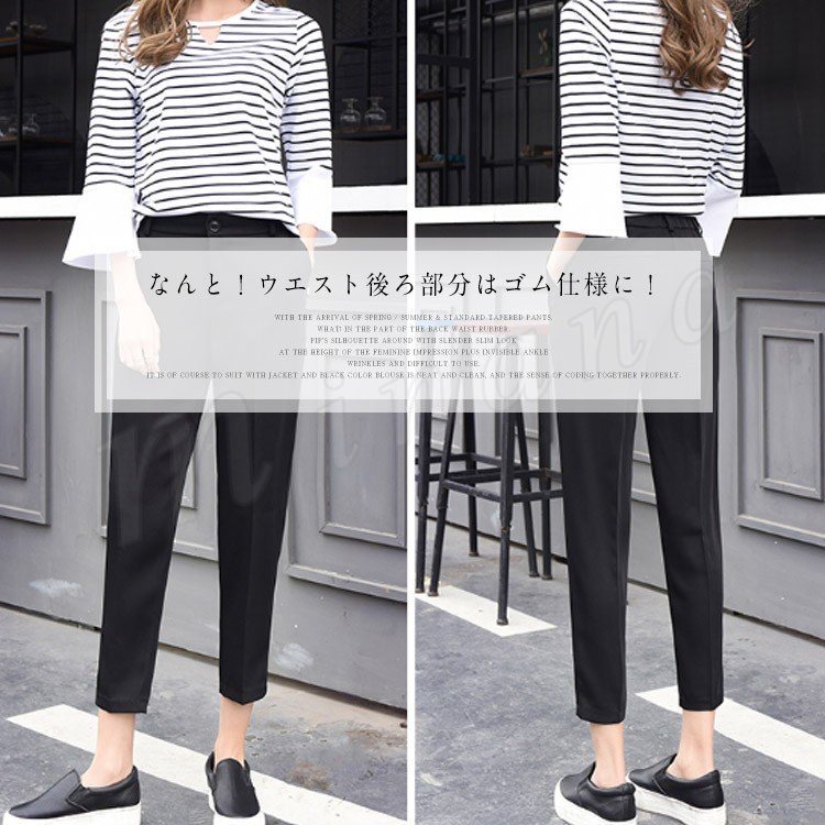 | オフィスや会社のビジネススーツ・事務服・制服に。 2018春夏新作&定番のテーパードパンツが入荷しました。 なんと!ウエスト後ろ部分はゴム仕様に! ピップ周りにゆとりを持たせすらりと細くみえるシルエット くるぶしが見えない丈で女性らしさの印象もプラス シワになりにくい素材を使用しております。 同色のブラックジャケットと合わせてスーツスタイルにはもちろんのこと、清楚感のあるブラウスと合わせればきちんとコーデにもオススメ。 ヒールでキレイめに、スニーカーでカジュアルに…♪幅広いコーデが楽しめる。 幅広いシーンでお使いいただけるので1枚持っていると、かなり大活躍してくれます! | |