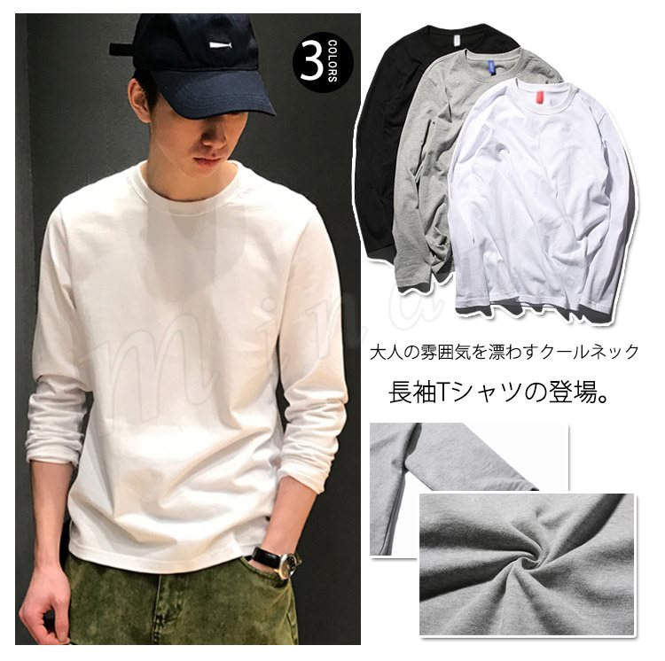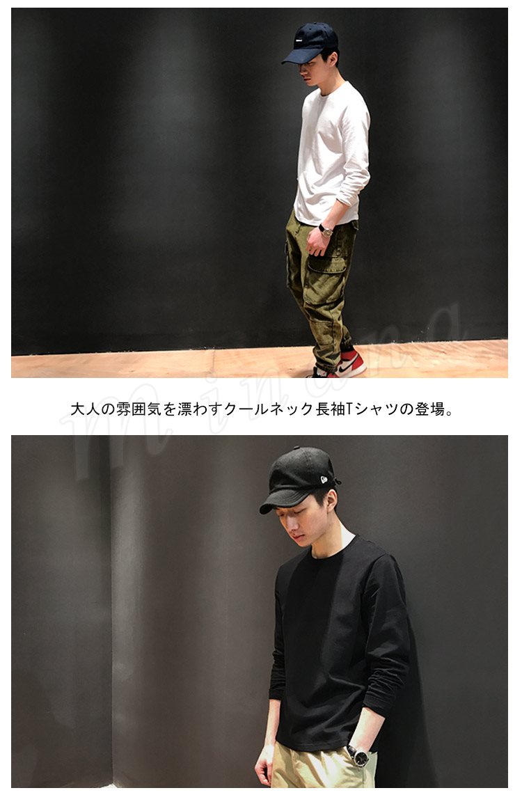 長袖 Tシャツ Uネック メンズ 長袖Tシャツ クールネック Tシャツ 無地 トップス トップス カットソー