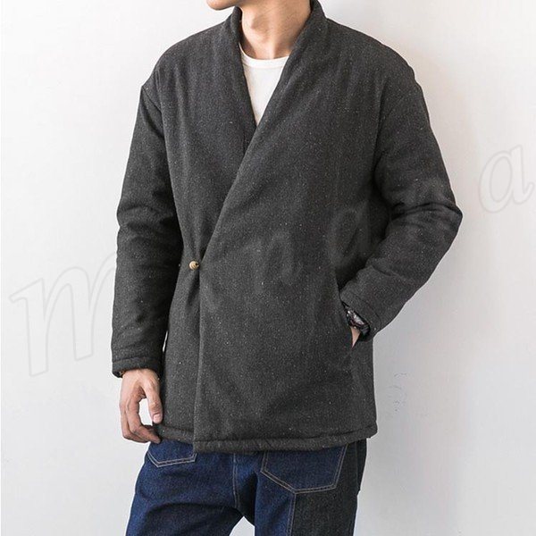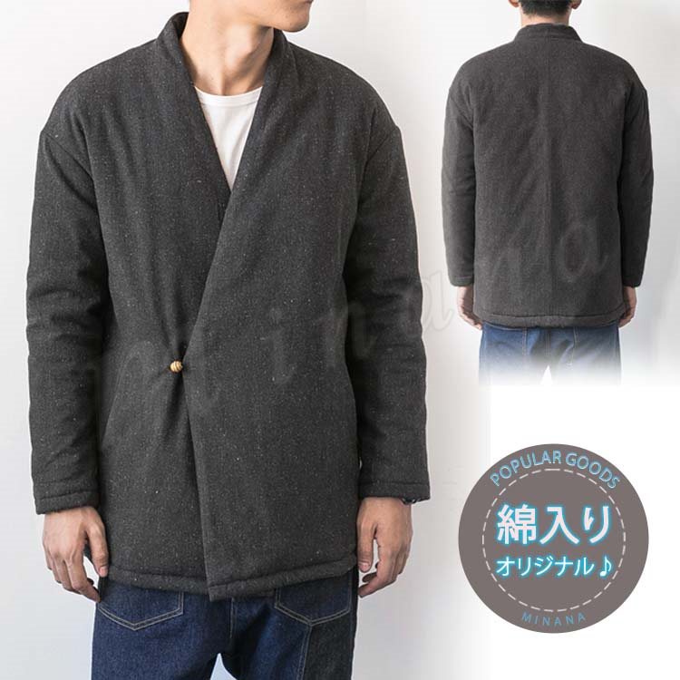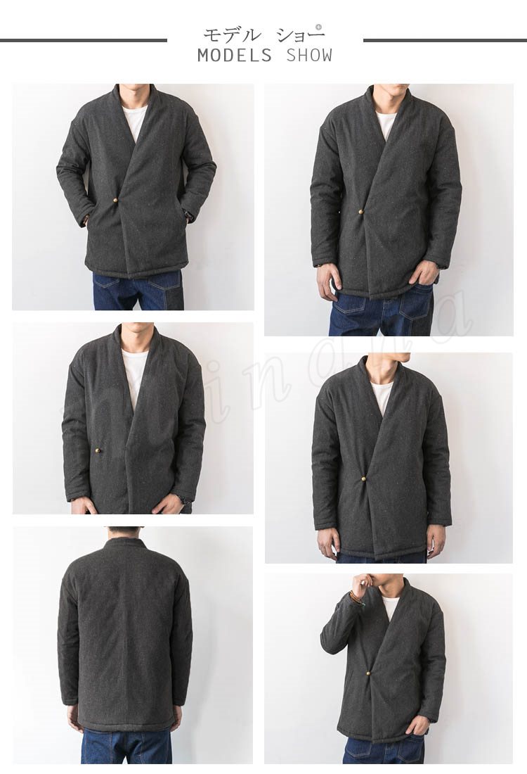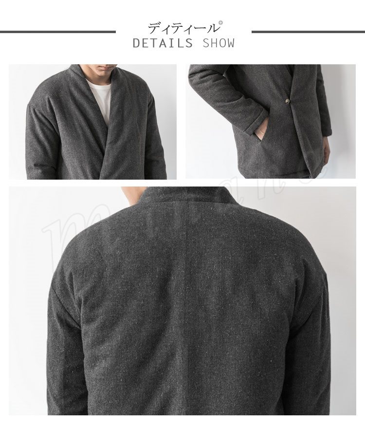 送料無料アウター ジャケット コート メンズ ブルゾン ノーカラー Vネック 無地 サイドボタン 羽織 シンプル 中綿入れジャケット クラシ