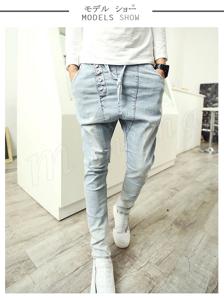 デニムパンツ サルエルパンツ デニム テーパードパンツ ジーンズ ダメージ加工 デニム アメカジ系 メンズ
