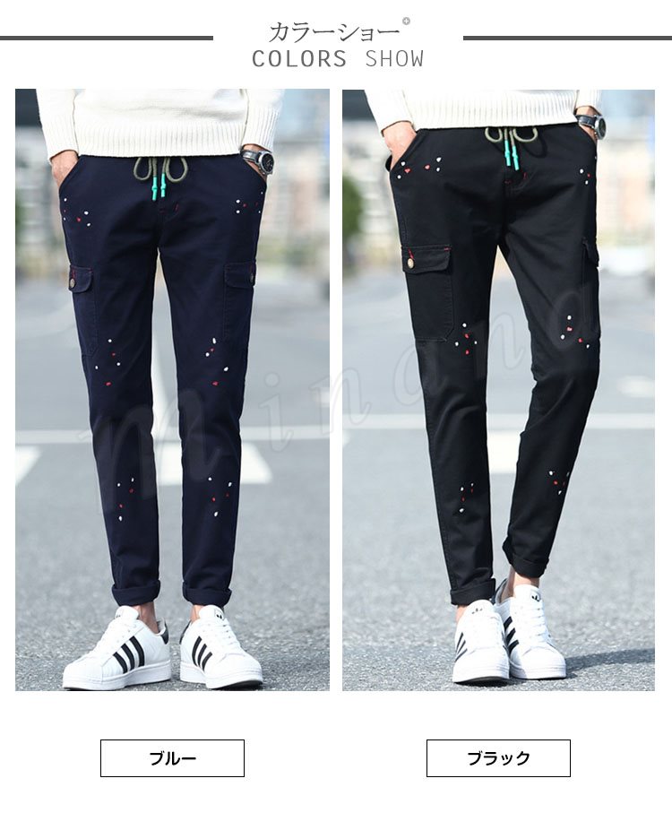 送料無料メンズ ボトムス 長パンツ イージーパンツ スキニーパンツ スリム カジュアル プリント ドット柄 デザイン ボトムス