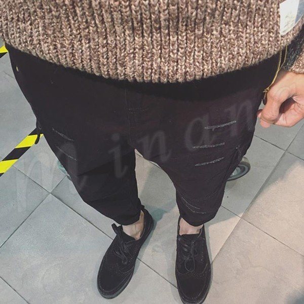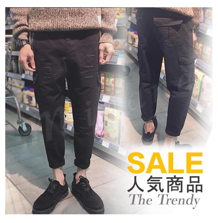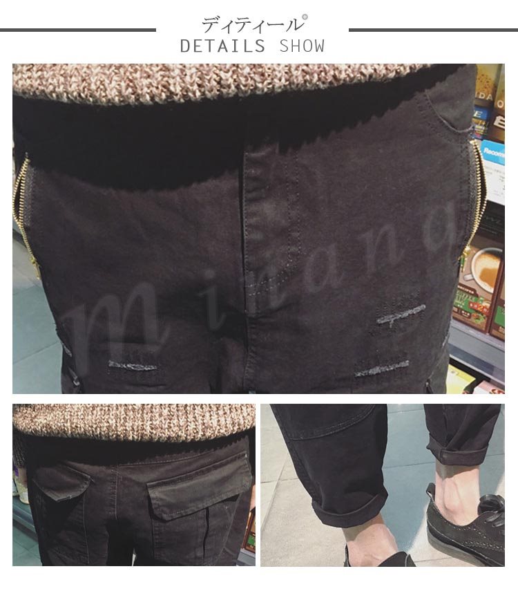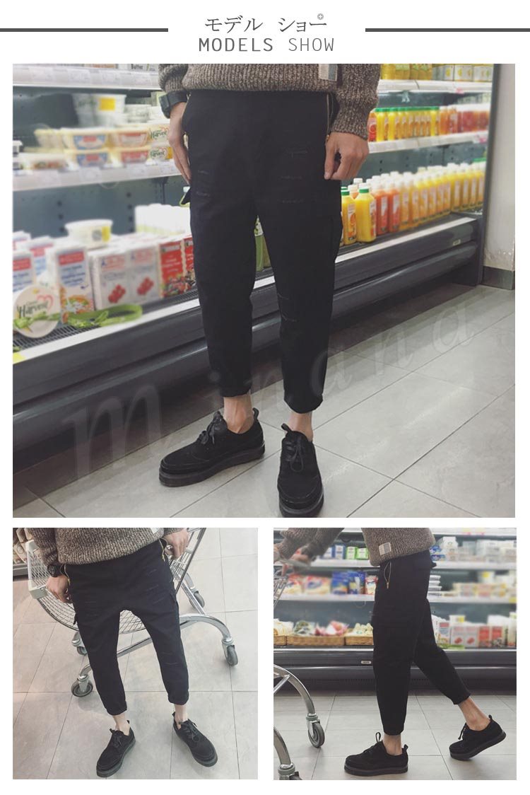 送料無料長パンツ サルエルパンツ 無地 パンツ メンズファション クロップドパンツ シンプル 無地 ダメージ加工 ゆったり ジョガーパンツ
