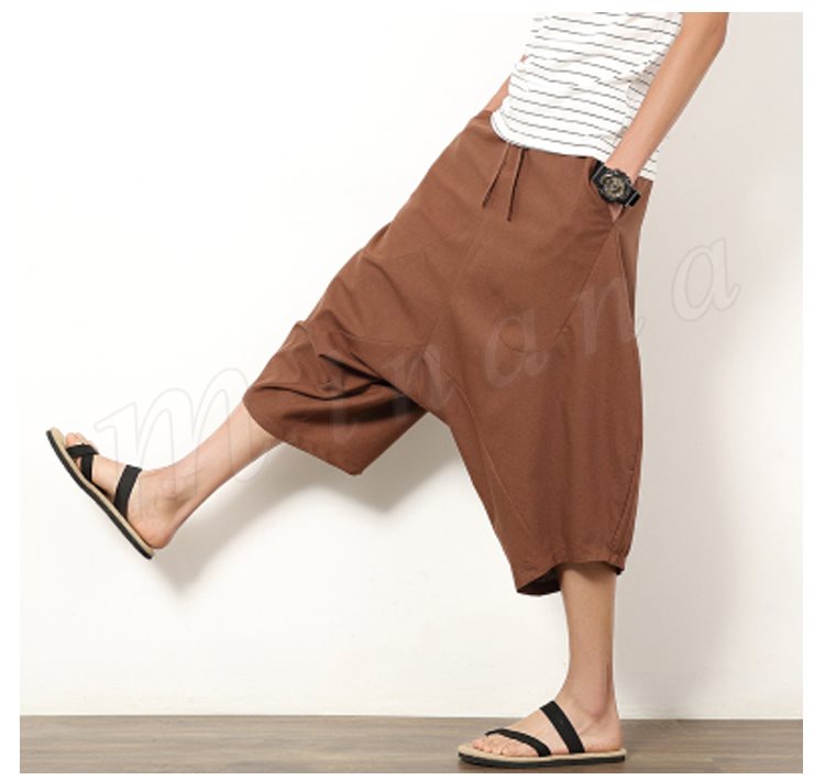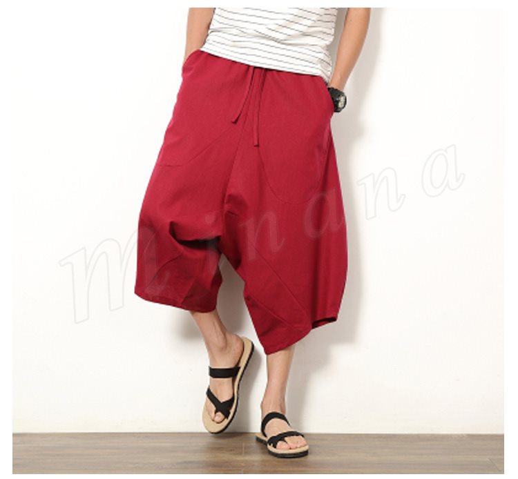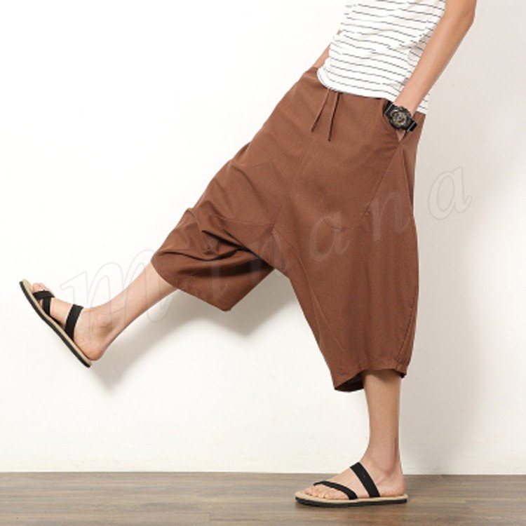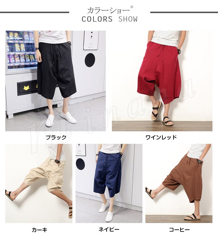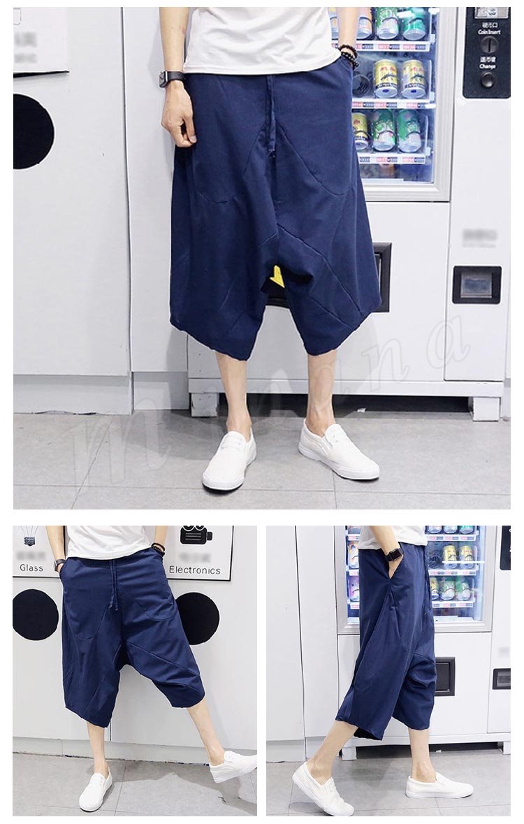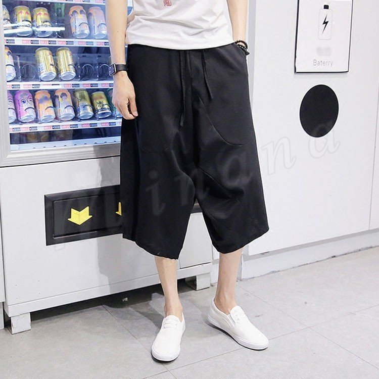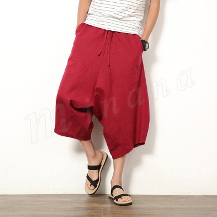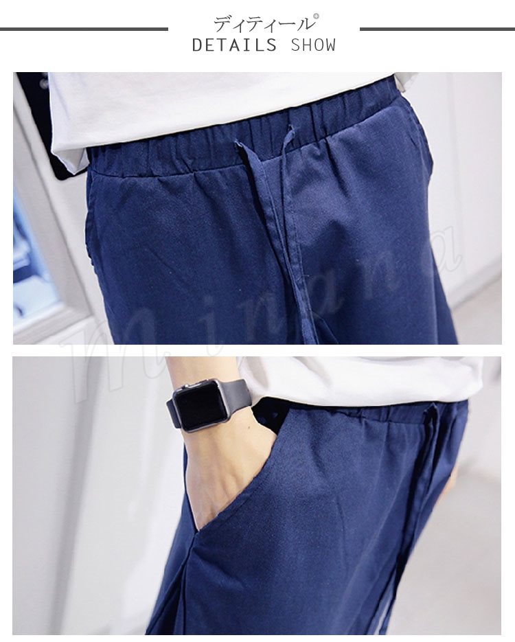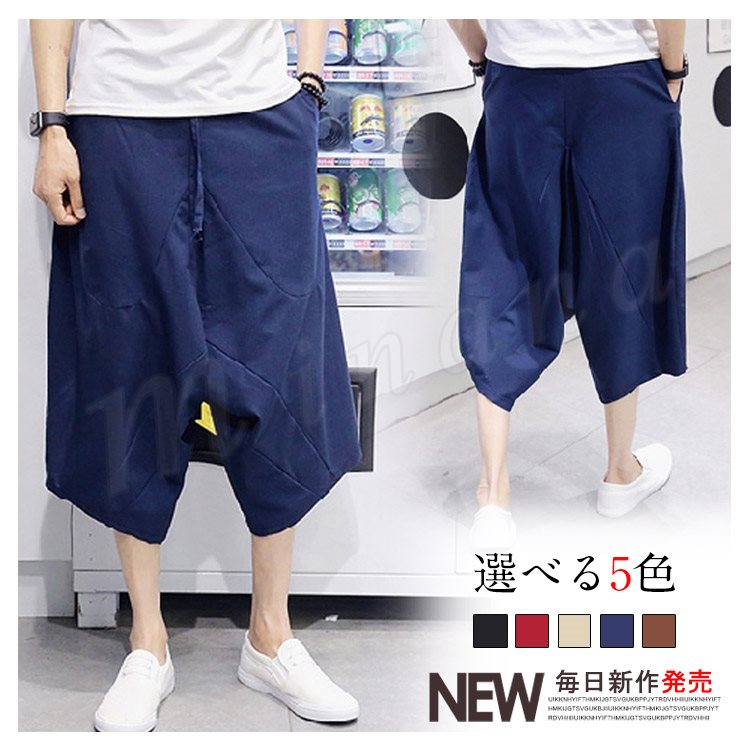 綿麻 ワイドパンツ リネン パンツ フレア ワイドパンツ ガウチョパンツ 7分丈 リラックス お兄系 アメカジ系 メンズ