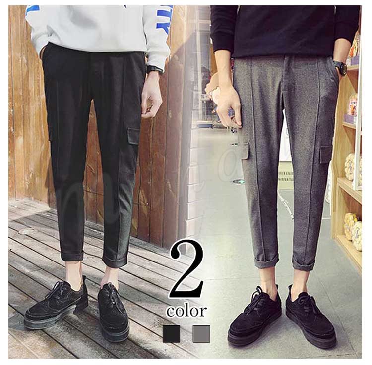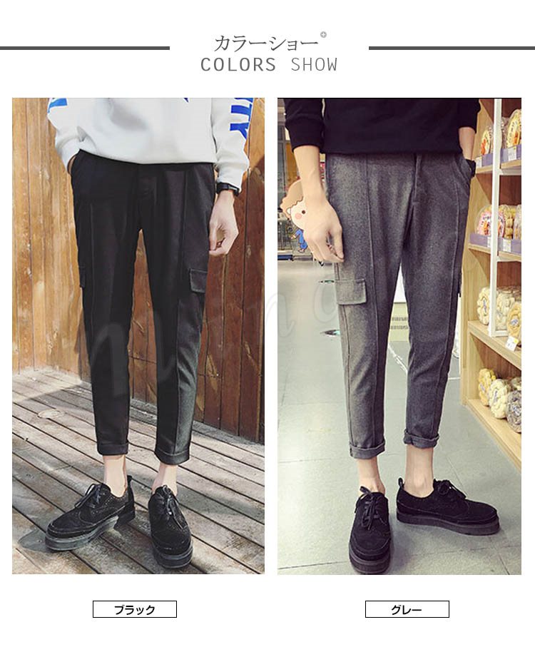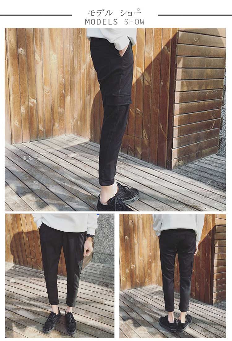 送料無料クロップドパンツ ボトムス スリム 無地 9分パンツ スウェットパンツ メンズファション 学院風 シンプル サルエルパンツ ジョガー