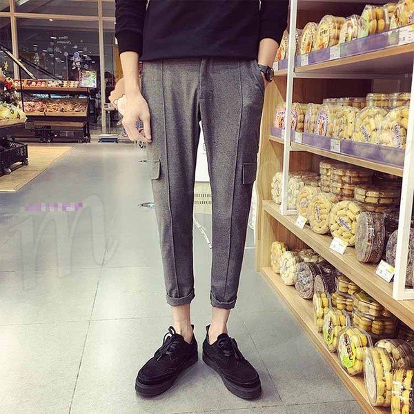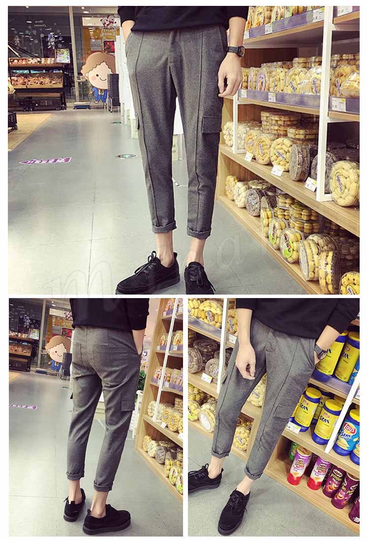 クロップドパンツ ボトムス スリム 無地 9分パンツ スウェットパンツ メンズファション 学院風 シンプル サルエルパンツ ジョガー