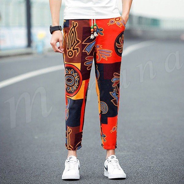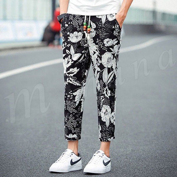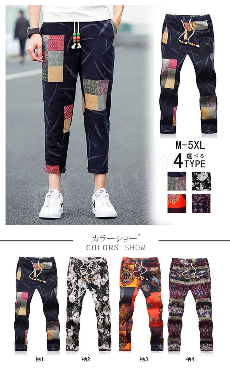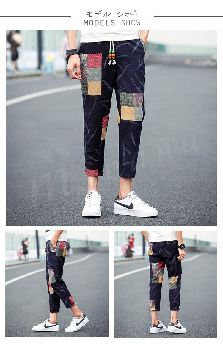 送料無料パンツ ボトムス クロップドパンツ カラー切替 スリム メンズファション 9分パンツ サルエル カジュアルパンツ イージーパンツ デ