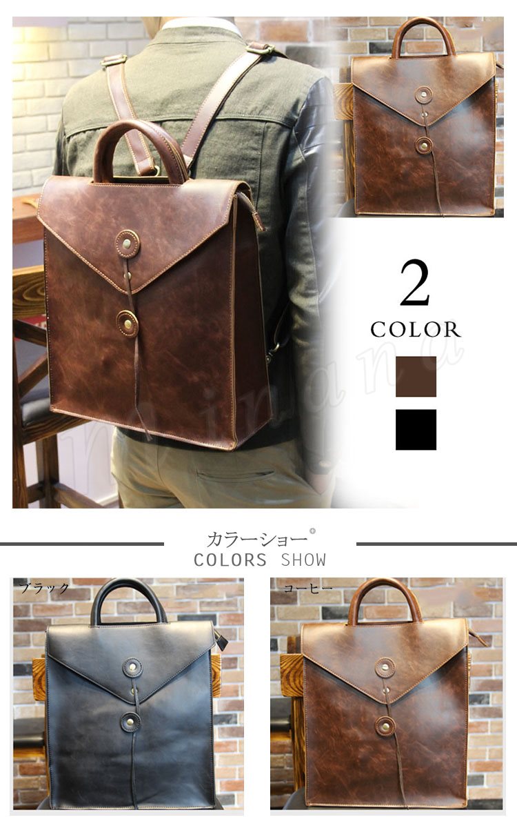 アメカジ系 3wayバッグ トートバッグ リュックサック ショルダーバッグ 斜めがけバッグ レザー メンズ PU レザー リュック リュックバ