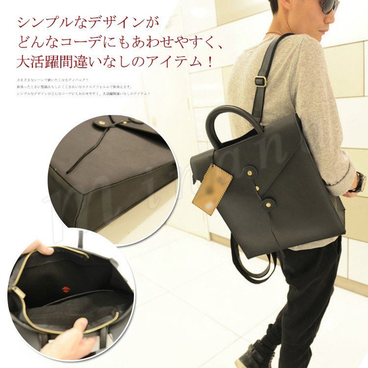 | さまざまなシーンで使いたくなるディバッグ! 背負ったときに型崩れもしにくくきれいなスクエアフォルムで背負えます。 シンプルなデザインがどんなコーデにもあわせやすく、大活躍間違いなしのアイテム! | |