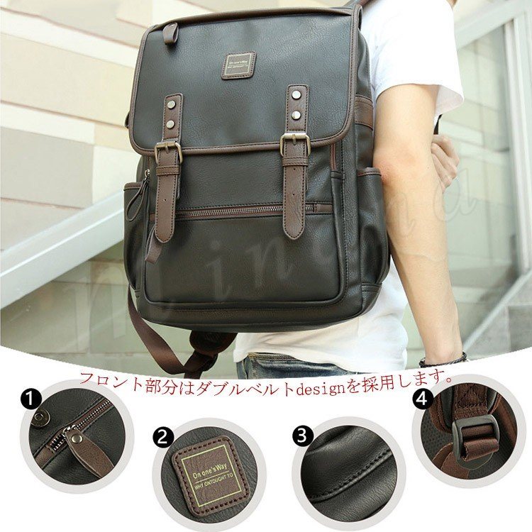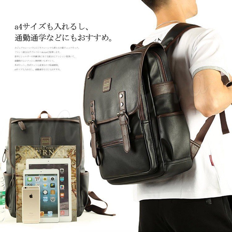 | カジュアルシーンでもビジネスシーンでも使える万能リュックサック。 フロント部分はダブルベルトdesignを採用します。 背中とショルダーの内側(体に当てる部分)にクッション性効いて、通勤性のよいメッシュ素材使いもポイント。 外ポケット、内ポケットも充実なので収納便利。 a4サイズも入れるし、通勤通学などにもおすすめ。 | |