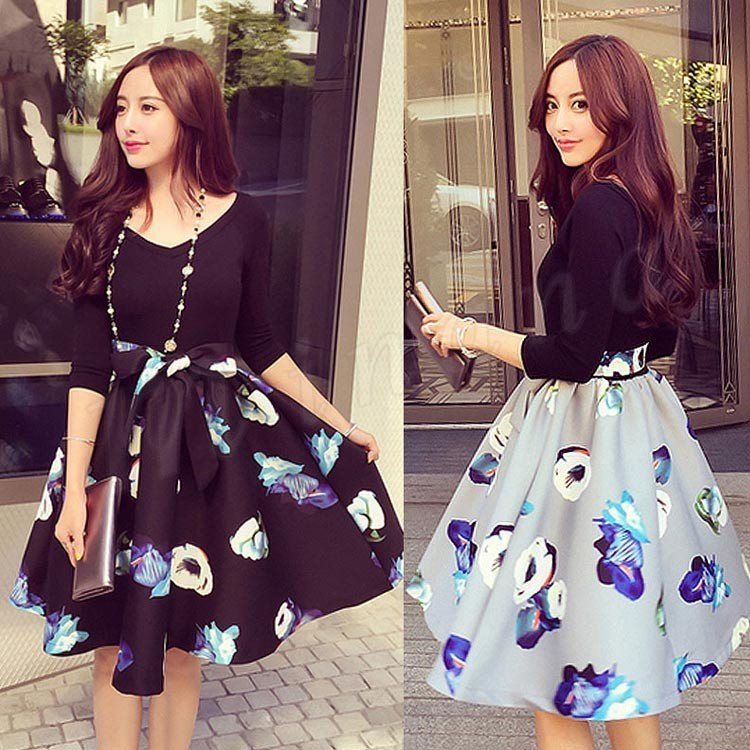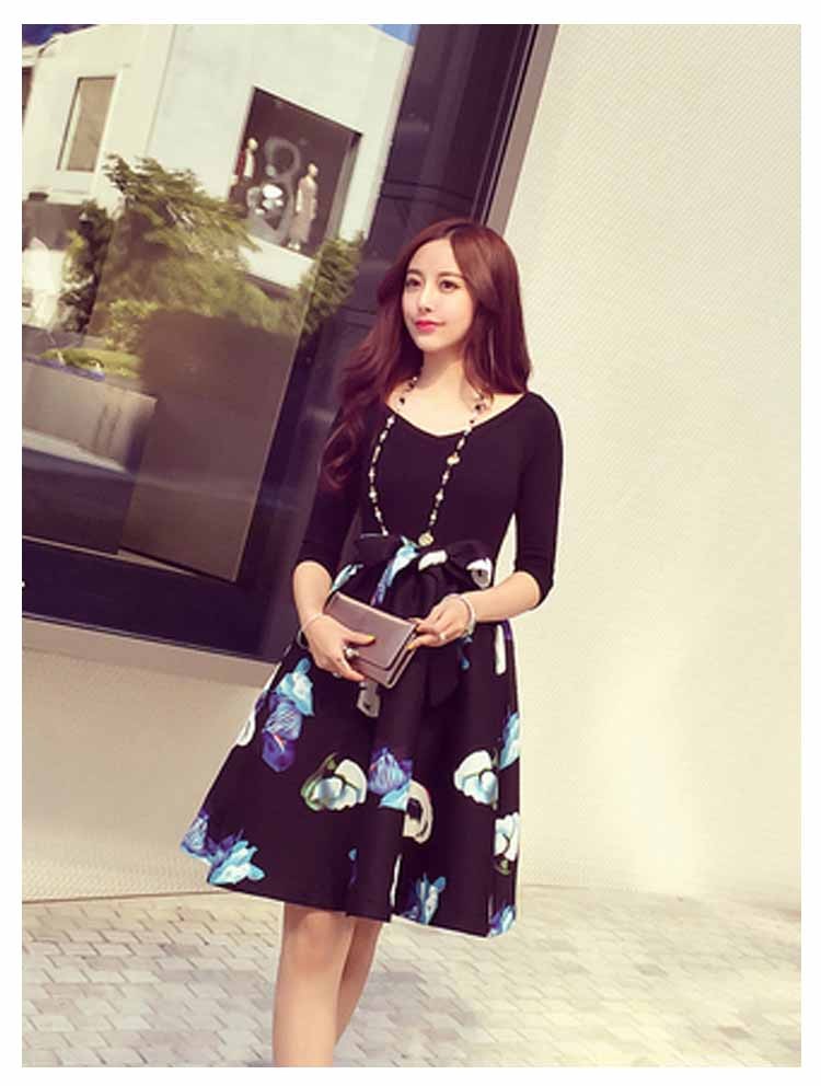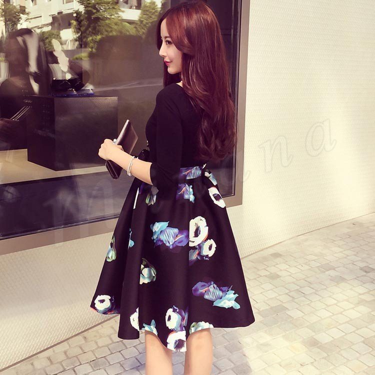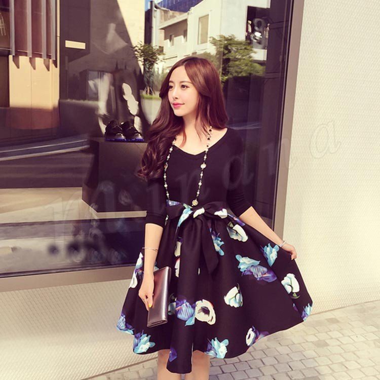 ワンピース レディース 膝丈ワンピース 春 花柄ワンピース 膝丈 長袖 vネックワンピース きれいめ 着痩せ 通勤 結婚式 パーティードレス 大人 大