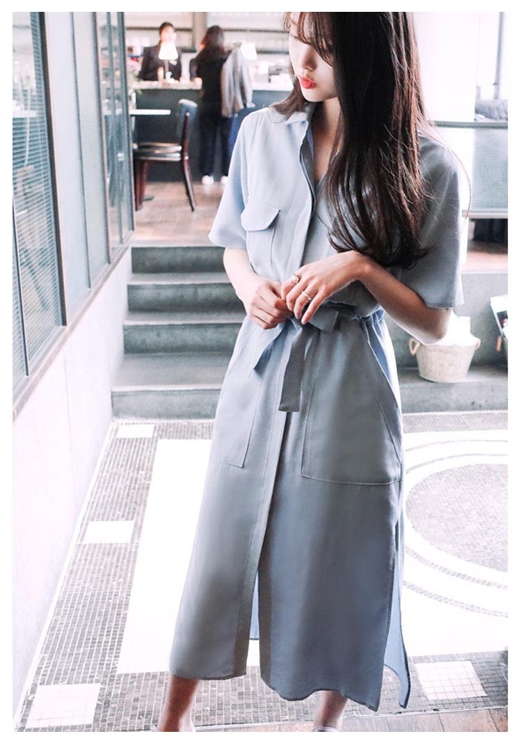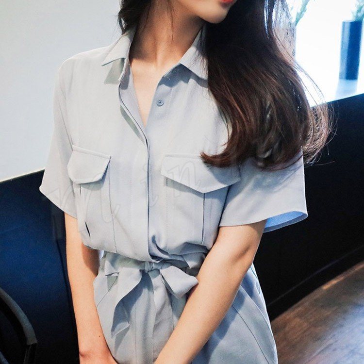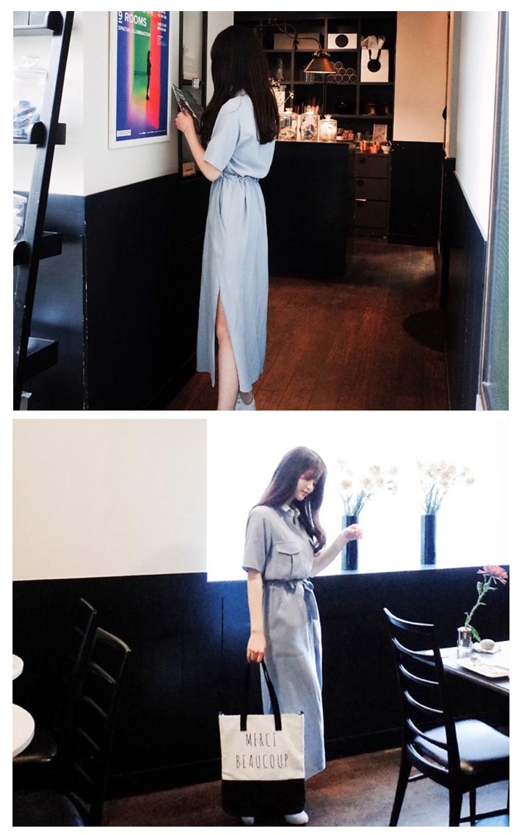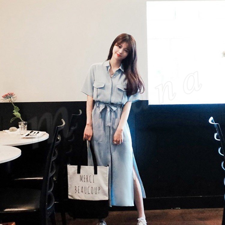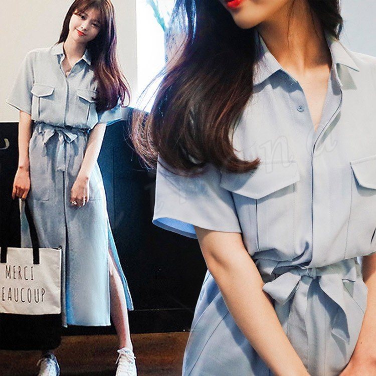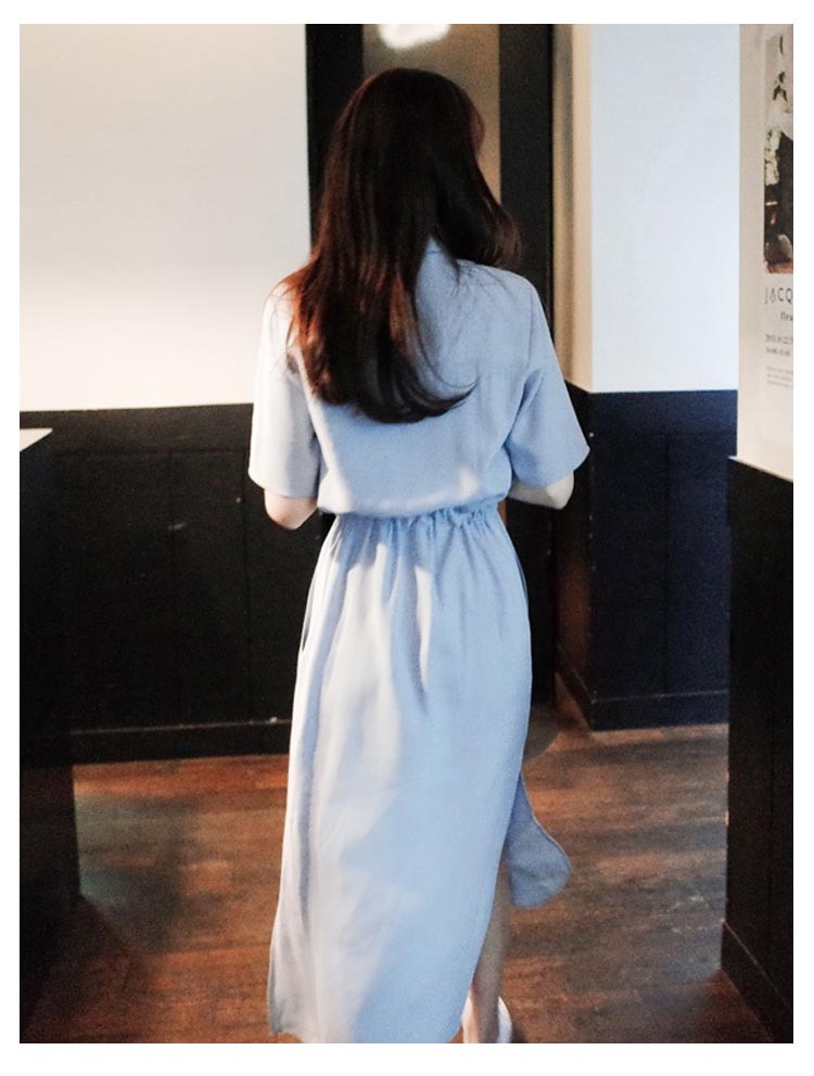 マキシワンピ 一枚で気楽 夏 半袖/ノースリーブ マキシワンピース マキシ丈 ブルー