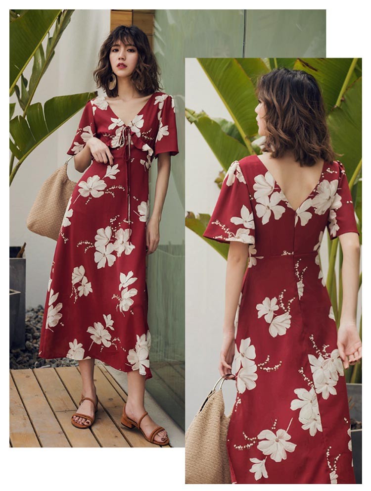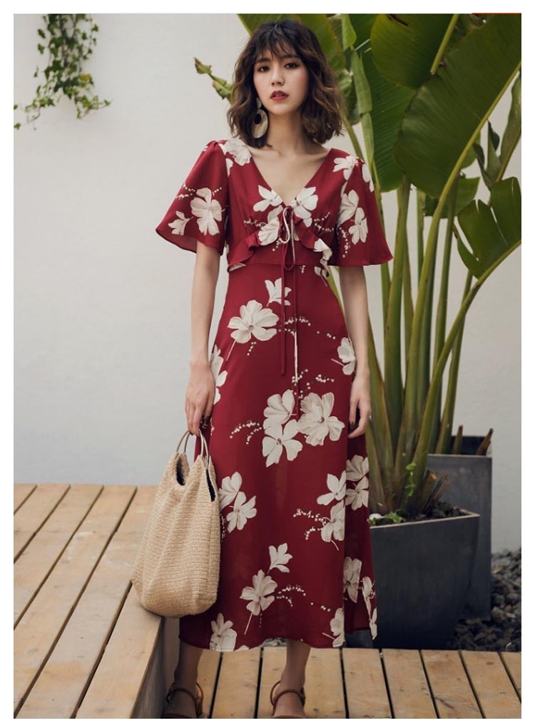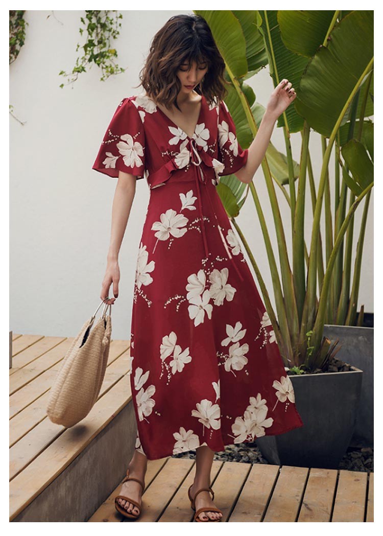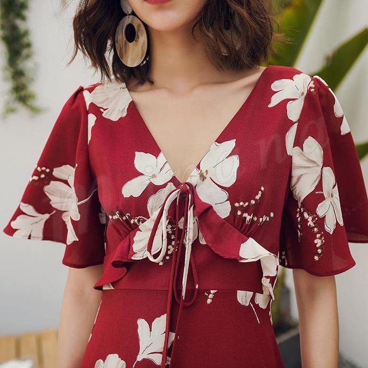 ワンピース レディース 40代 春夏 マキシ丈ワンピース きれいめ 花柄 半袖 Vネック ロング丈ワンピース 結婚式 マキシ丈 着痩せ オシャレ 大人