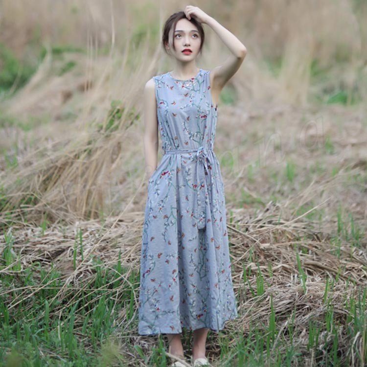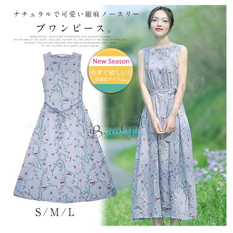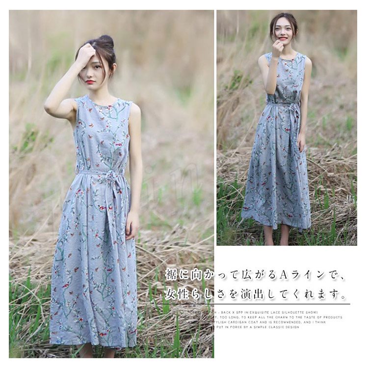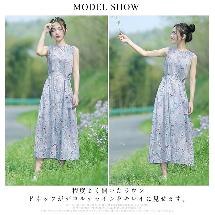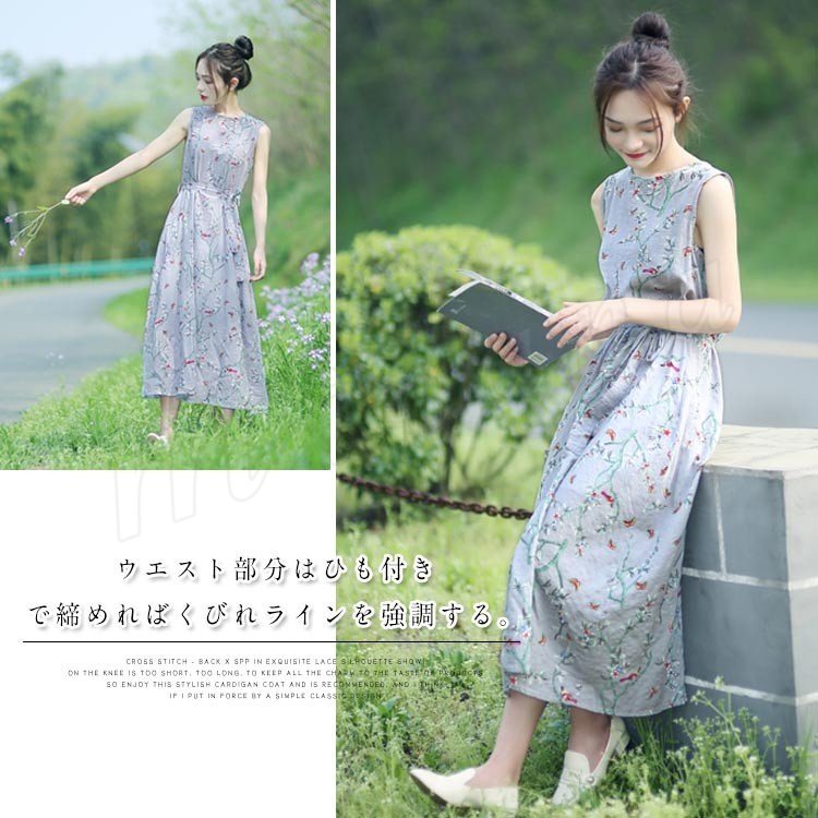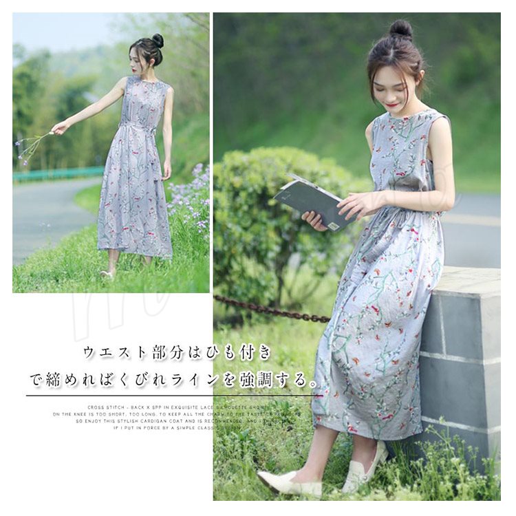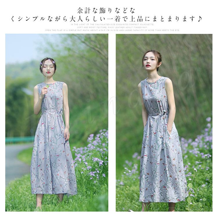 花柄ノースリーブワンピース ワンピース 夏ワンピース ノースリーブ ロングワンピース ミモレ丈 花柄 ワンピ 綿混 大人 可愛い 春夏
