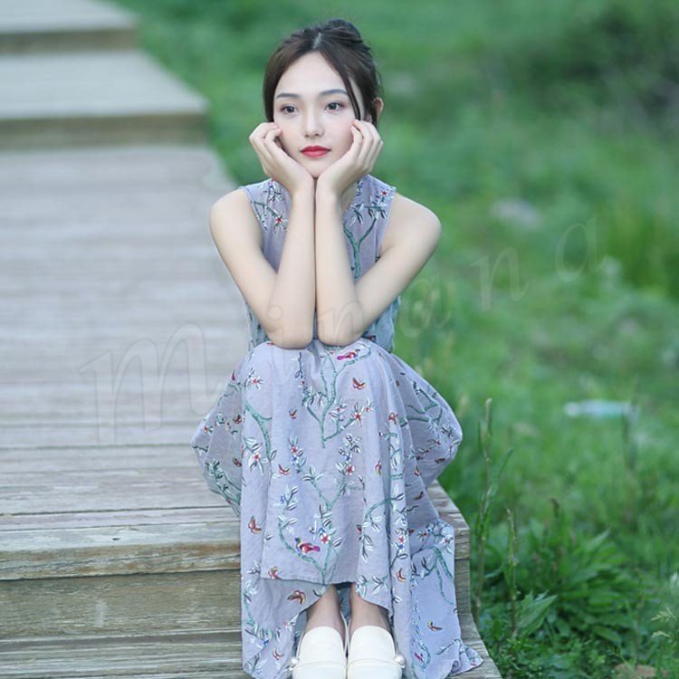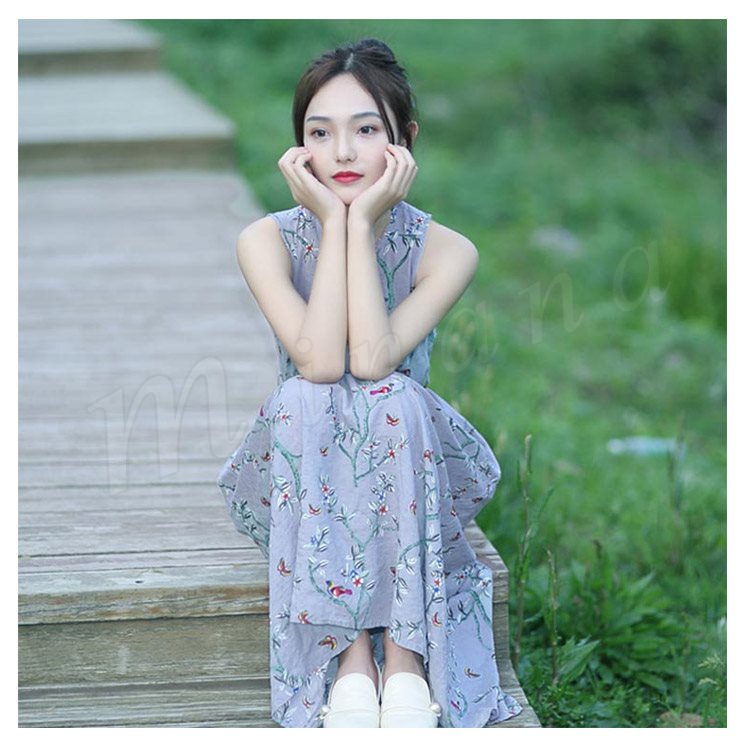ナチュラルで可愛い綿麻ノースリーブワンピース。